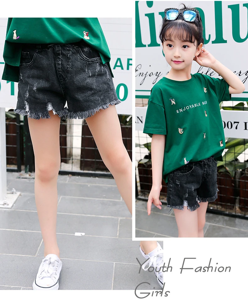 Летние Рваные джинсовые шорты для девочек, шорты, модные подростковые короткие брюки для девочек, пляжная одежда