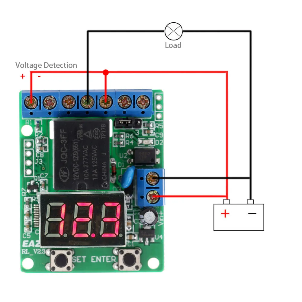 Цифровой дисплей обнаружения напряжения постоянного тока, управление релейным выходом.