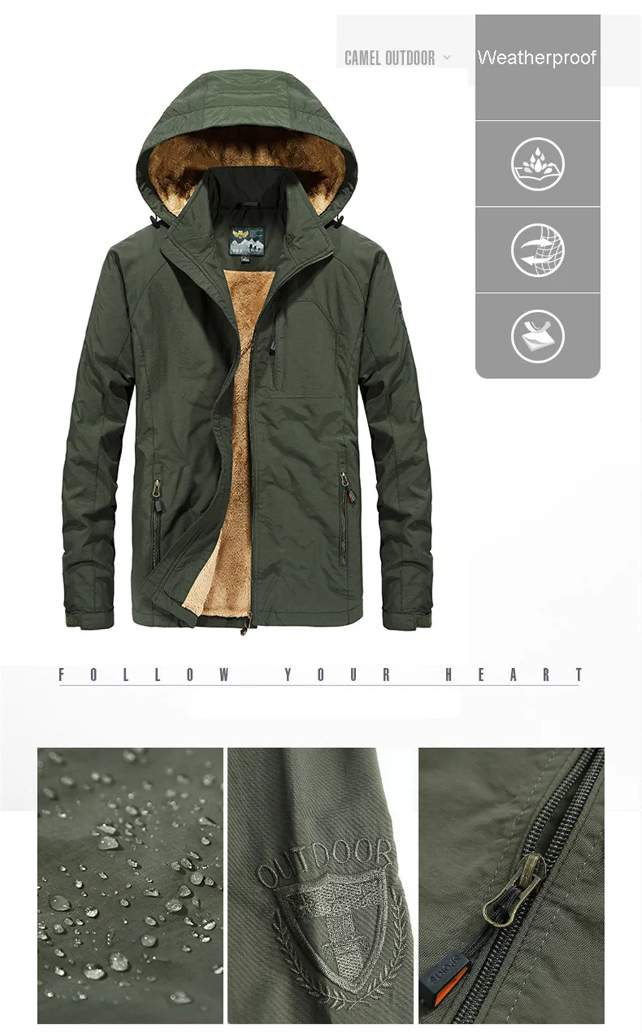 Открытый альпинистский костюм размера плюс, однотонный Повседневный Топ, мужская зимняя куртка с капюшоном, водонепроницаемый ветрозащитный зимний костюм для рыбалки