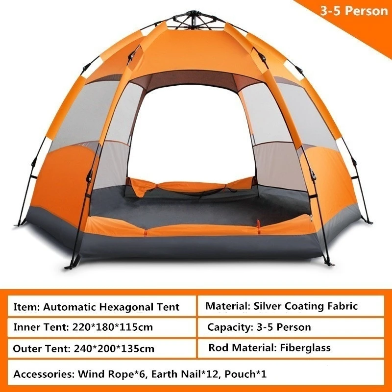 Автоматическая палатка-юрта XC на 3-5 человек, двухслойная монгольская шестиугольная палатка для кемпинга, легкая в установке летняя туристическая семейная тент, навесы