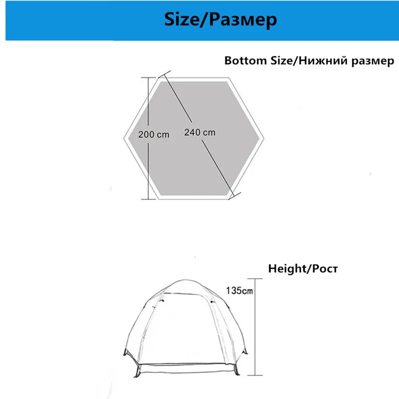 Размер внешней палатки:240*200*135 см/94,49*78,74*53,15 дюймов прибл.