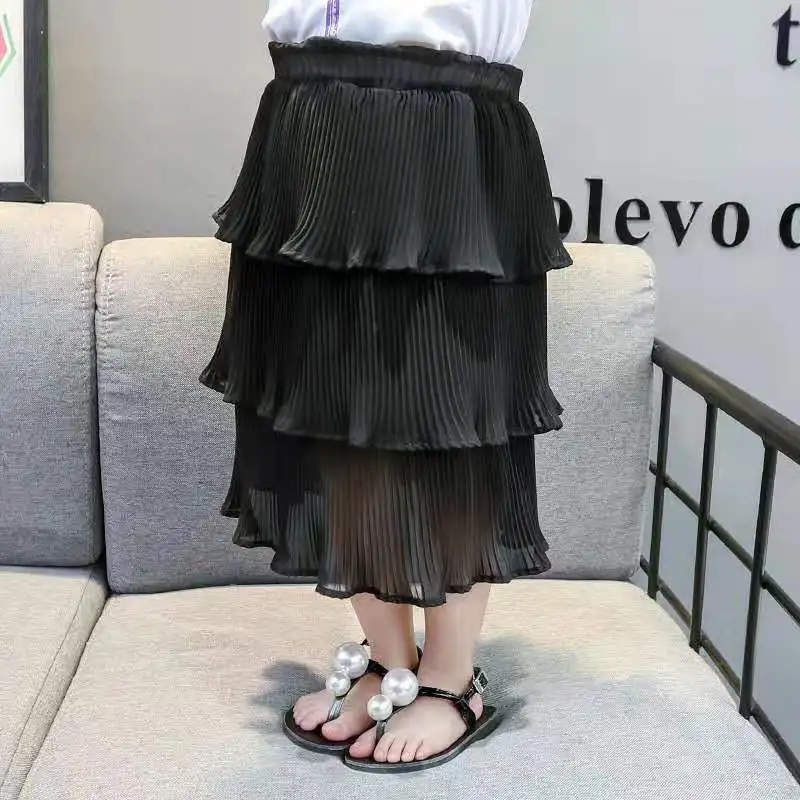 Летнее платье для девочек; Однотонная Повседневная Милая юбка принцессы; Плиссированная юбка; Многослойная юбка