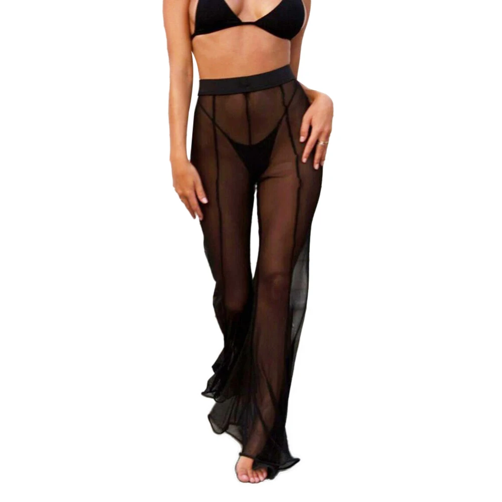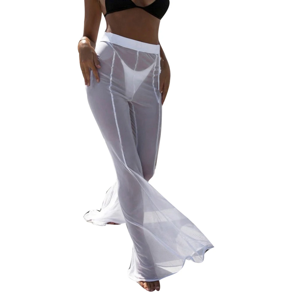 Летние пляжные женские прозрачные бикини с высокой талией, длинные штаны, свободные брюки