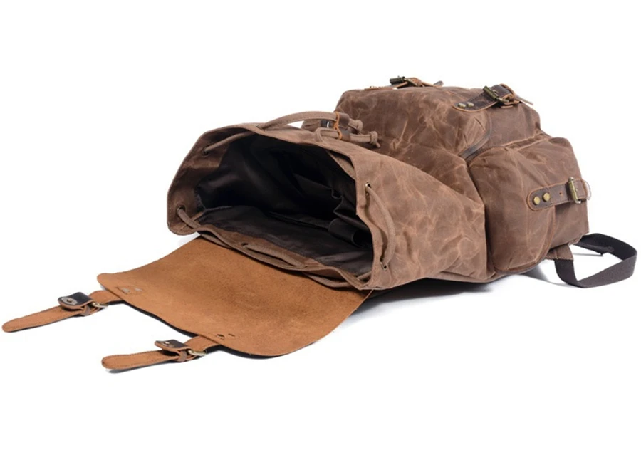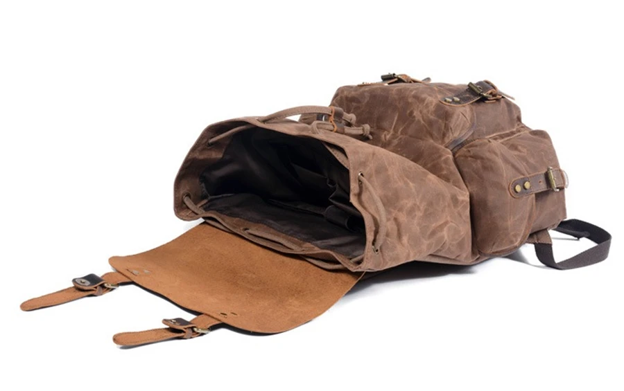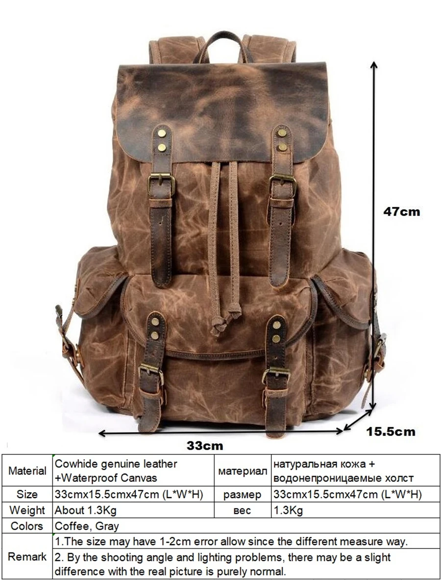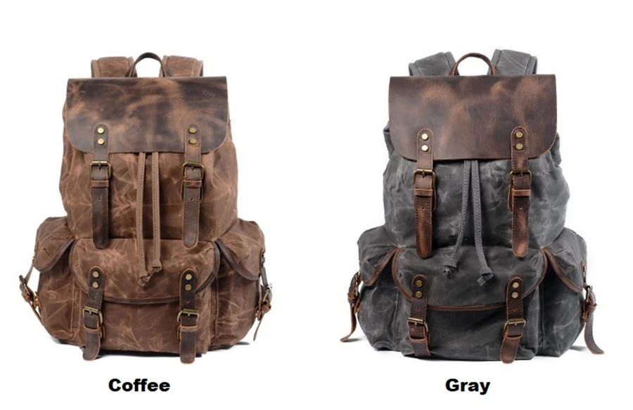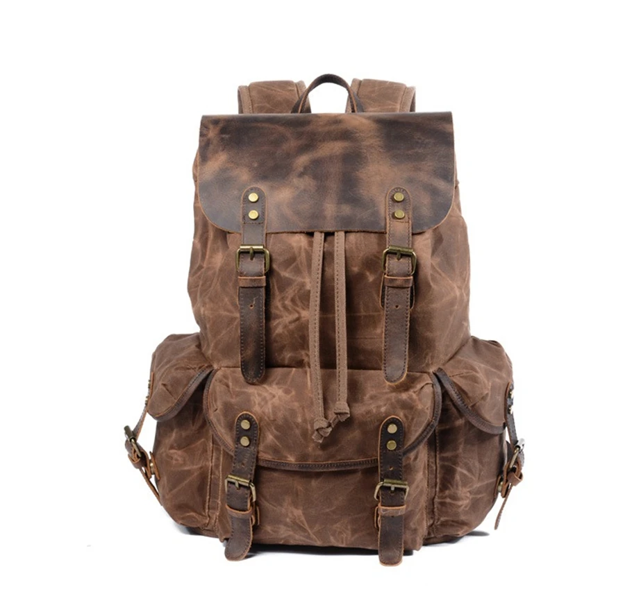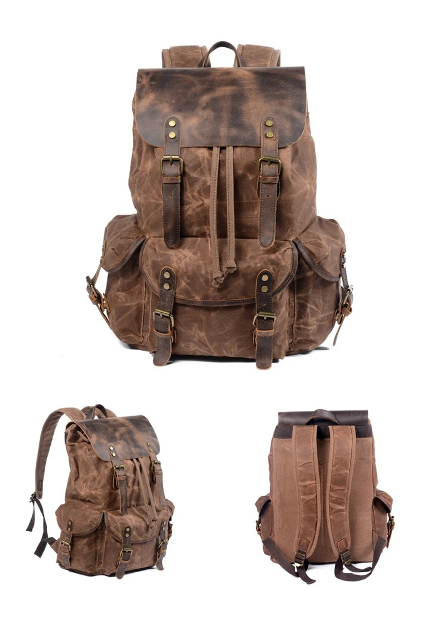 New 2020 Men's Vintage School Bags Travel Sports Camping Hiking Rucksack Quality Waxed Canvas Leather Casual Men Laptop Backpack