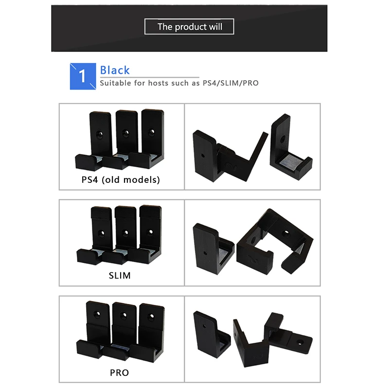 Есть три типа настенных кронштейнов для игровых хозяев на выбор, которые подходят для разных игровых хозяев. Один для игрового хоста PS4, один для игрового хоста SLIM и один для игрового хоста PRO.