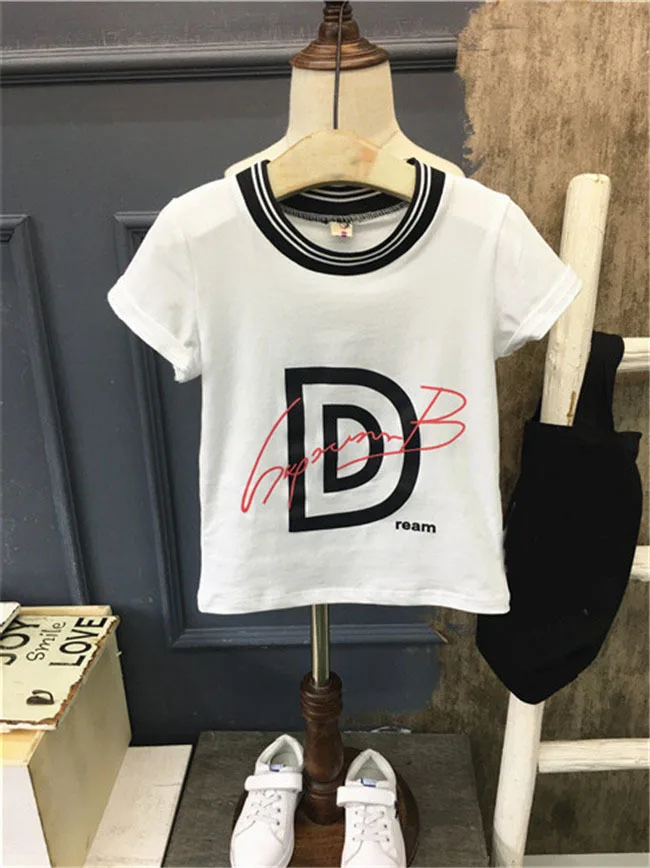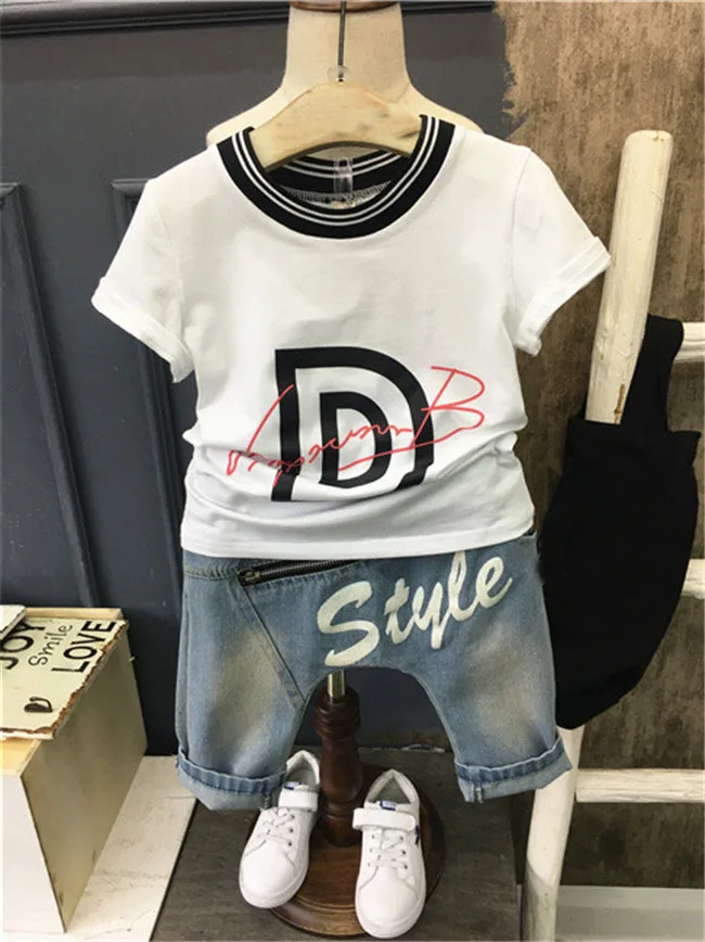 Комплект одежды для мальчиков; Летняя футболка для мальчиков с надписью «Wild» + ковбойские штаны на молнии с буквенным принтом; Комплект детской одежды
