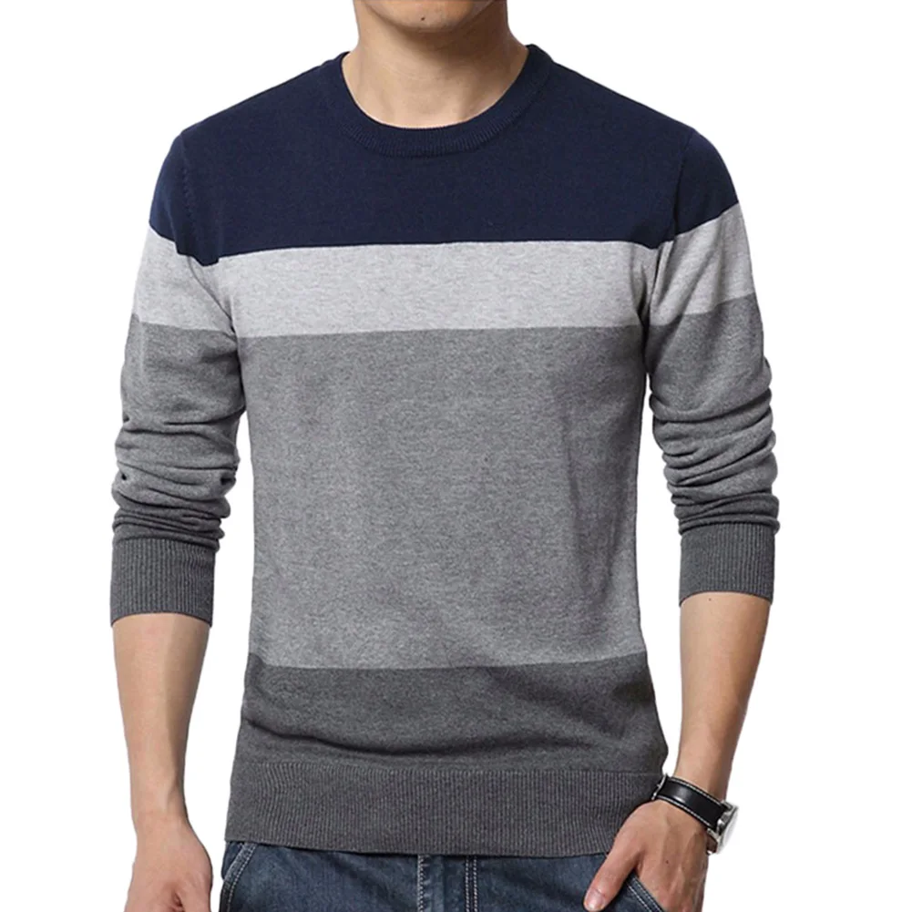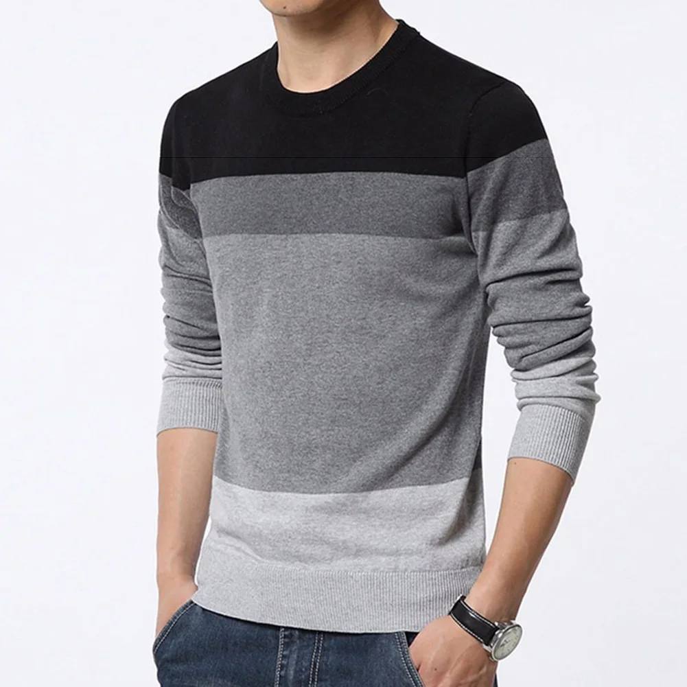 Шикарный мужской цветной пуловер с круглым вырезом и длинным рукавом, облегающая блузка, вязаный свитер