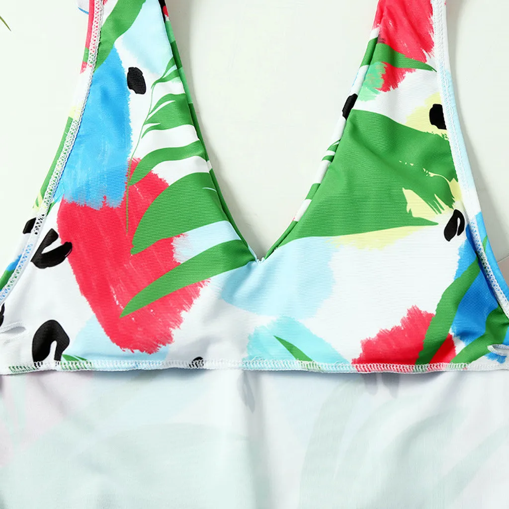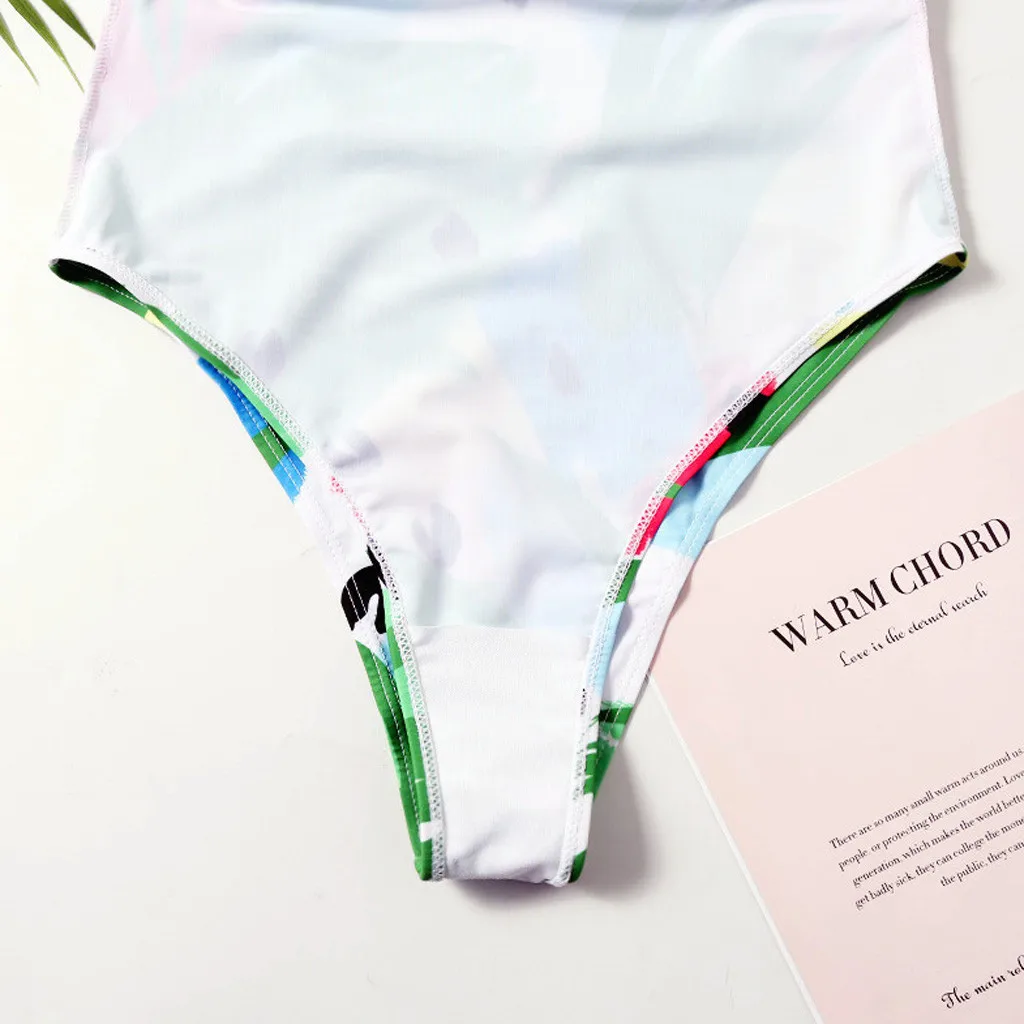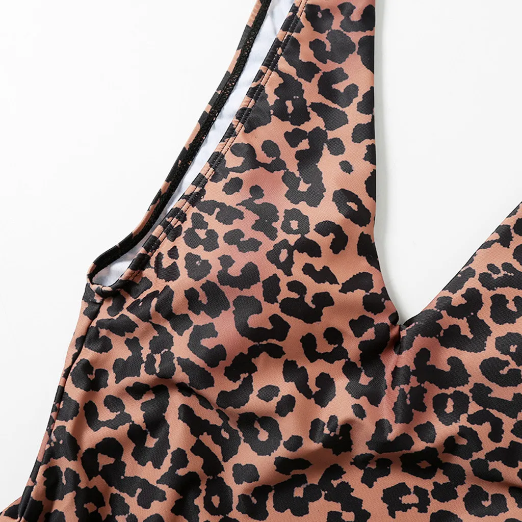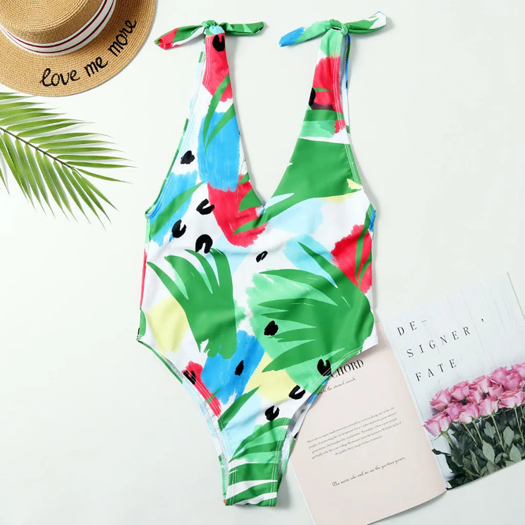 Новый женский модный сексуальный комбинезон с v-образным вырезом и цветочным леопардовым принтом, купальный костюм с открытой спиной, купальный костюм с пуш-ап, купальный костюм с подкладкой, пляжная одежда
