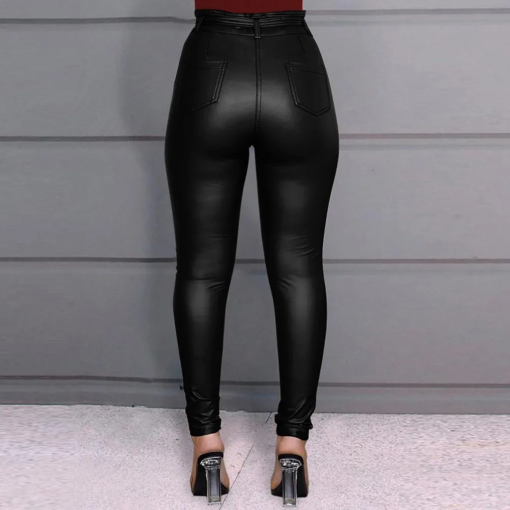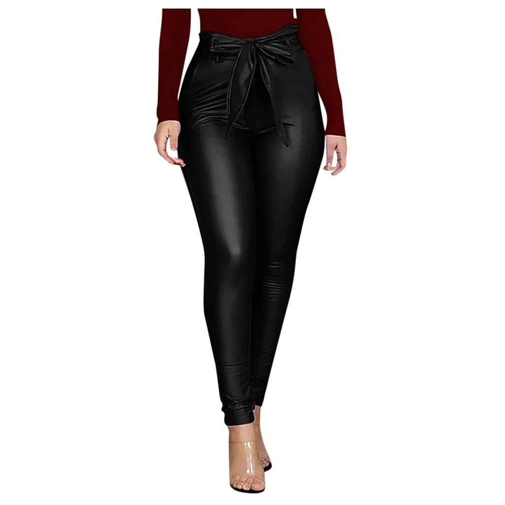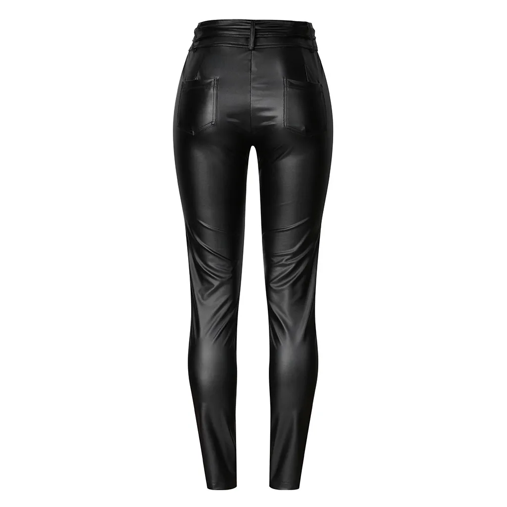 Женские тонкие кожаные штаны большого размера с высокой талией, повседневные Стрейчевые брюки