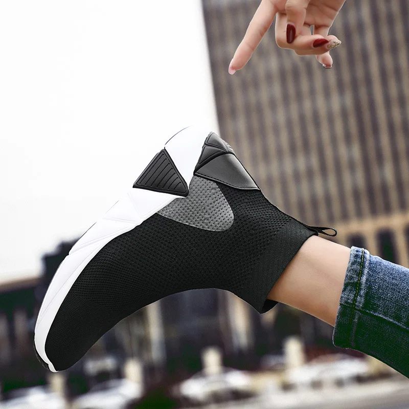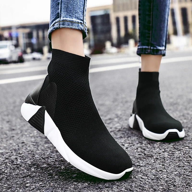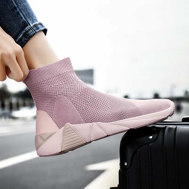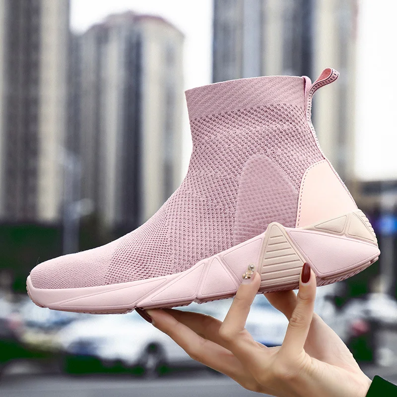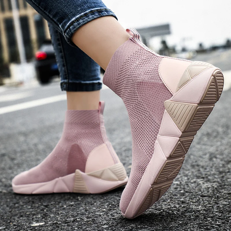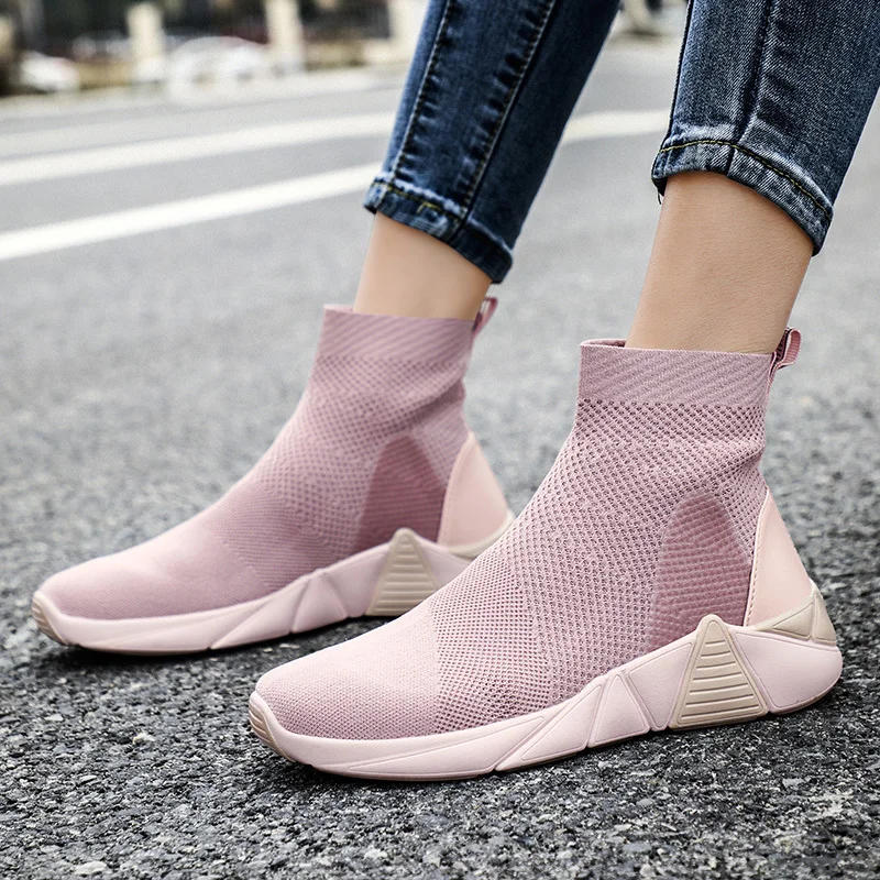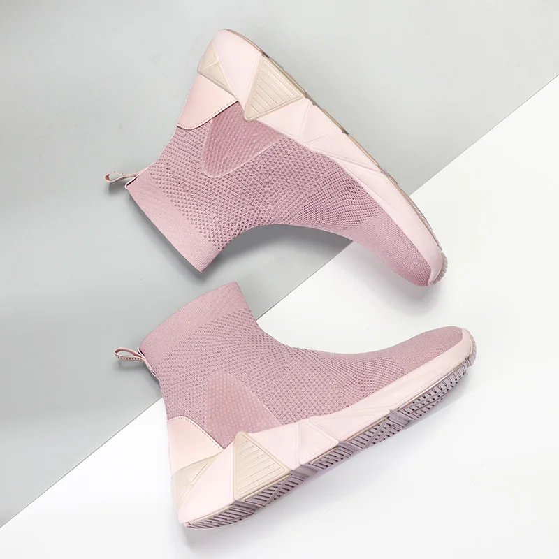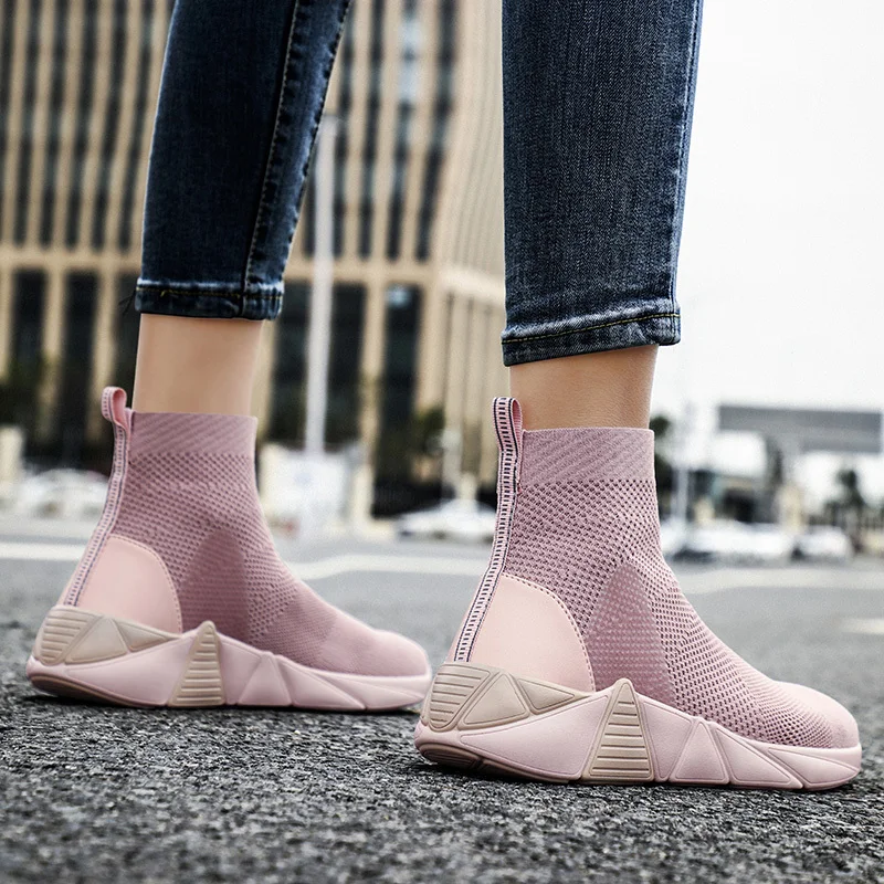 High Top Socks Running Shoes for Women Summer Breathable Slip on Sneakers Pink/Black Ladies Sport Walking Jogging Shoes