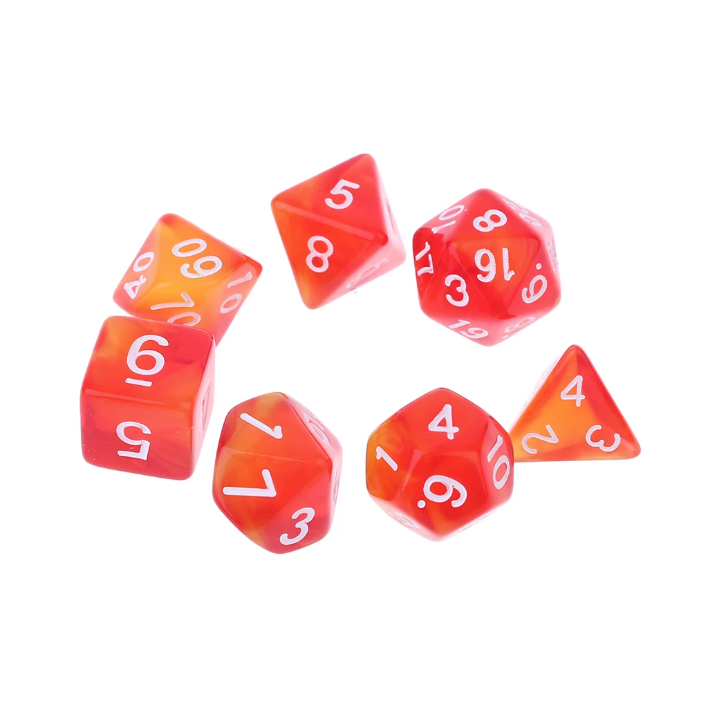 Настройте свои игры с помощью персонального набора игральных костей. Каждый цвет поставляется с 7 разными кубиками: 4, 6, 8, 10, 12, 20 сторонними кубиками. Покажите свои игровые навыки с помощью этих нескольких сторон. Идеальный подарок для любителей игр TRPG. Только кубики, другие демонстрационные аксессуары на картинке в комплект не входят.