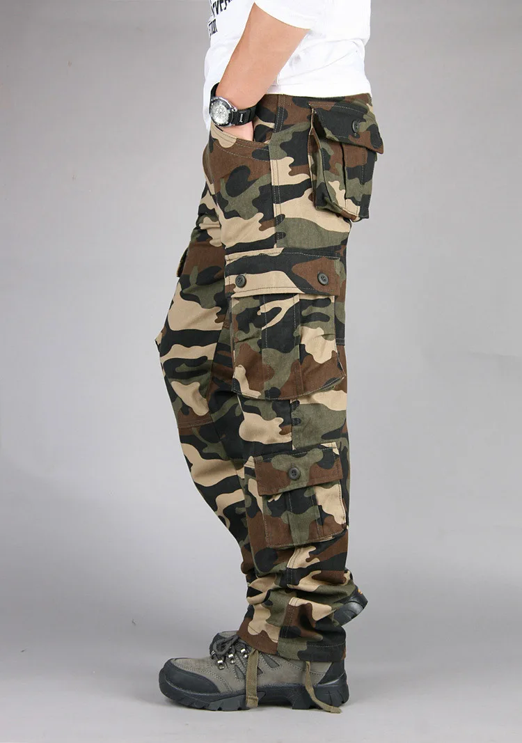 Мужские уличные камуфляжные тактические брюки-карго, износостойкие хлопковые свободные брюки с несколькими карманами, альпинистские Походные штаны для рыбалки
