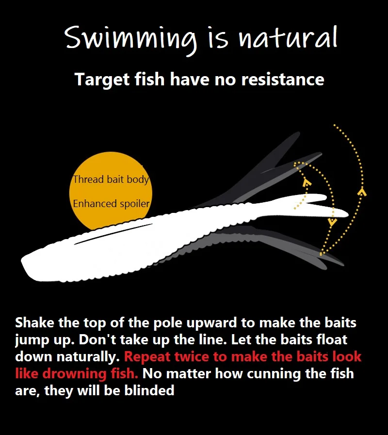 Встряхните верхнюю часть полюса вверх, чтобы сделать приманки прыгать вверх. Не Занимайте линию. Пусть приманки плавают естественным образом. Повторите дважды, чтобы baits выглядела как утопающая рыба. Независимо от того, насколько хитры рыбы, они будут ослеплены