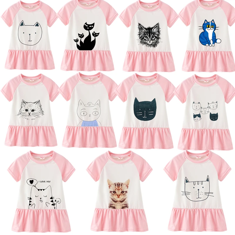 Детские платья для девочек, летнее милое платье принцессы, детское платье с коротким рукавом и принтом мультяшного кота, детская модная одежда, Vestidos