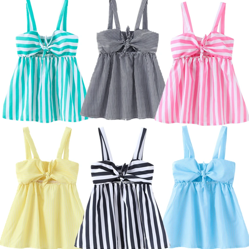 Детские платья для девочек, новые летние платья принцесс, милое Полосатое платье с бантом, детское платье на бретельках, пляжные вечерние платья