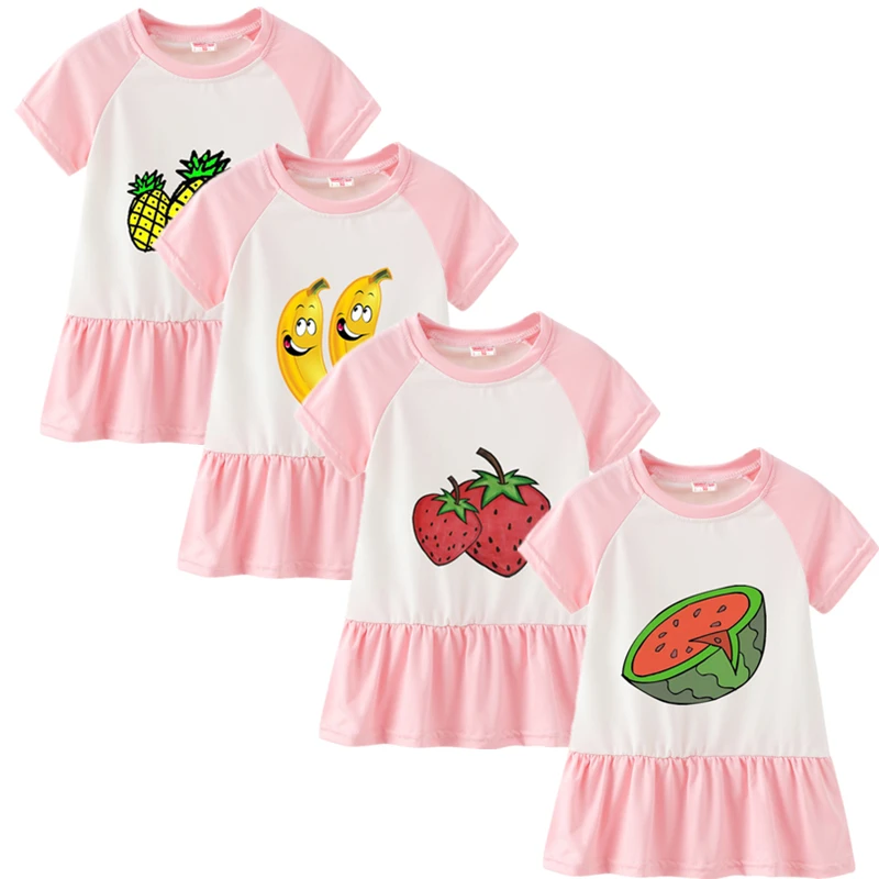 Летнее Новое Детское платье для девочек с мультяшным принтом арбуза, банана, фруктов, вечерние платья с коротким рукавом, детская одежда, платья принцесс
