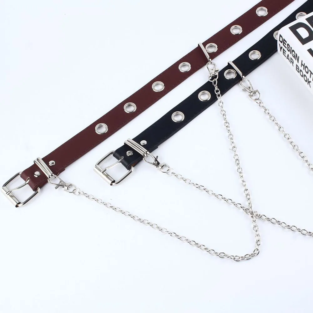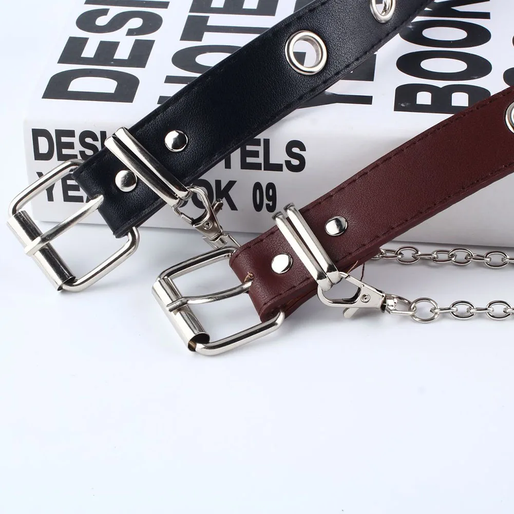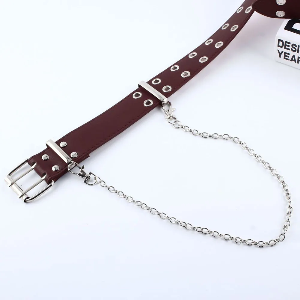2020 Новый двухрядный ремень с отверстиями для мужчин и женщин, мужской пояс в стиле панк с петлей на цепочке, декоративный пояс для джинсов, брюки