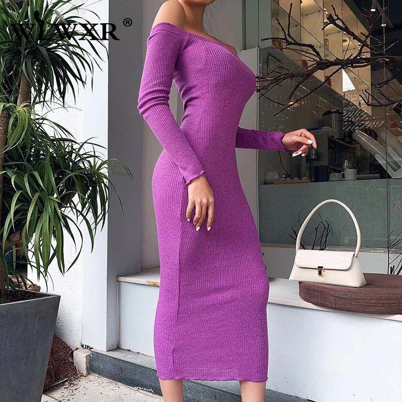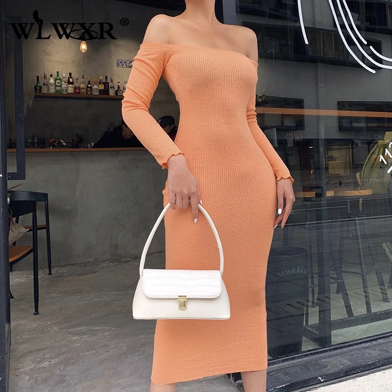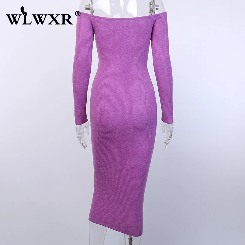 WLWXR Повседневное трикотажное облегающее платье для женщин с длинным рукавом, женское платье макси без бретелек с открытыми плечами, Длинные Сексуальные Платья Vestidos