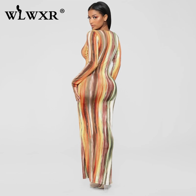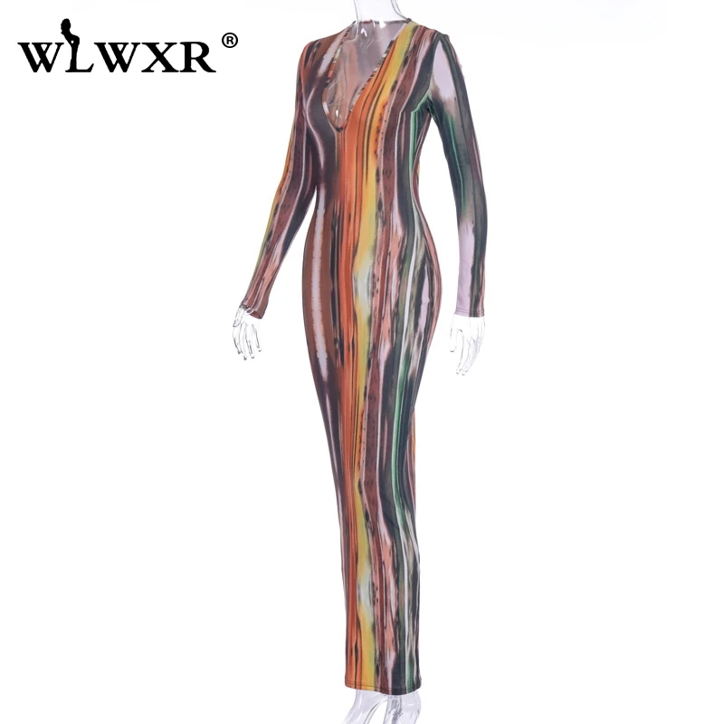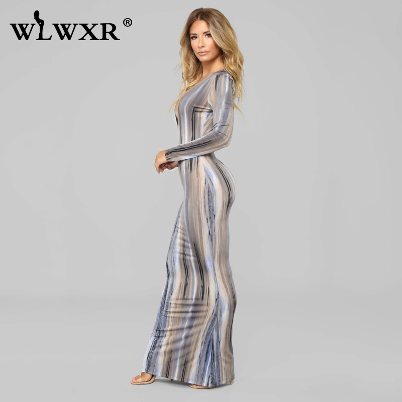 WLWXR, повседневное, с завязками, окрашенное, с запахом, макси платье, для женщин, с длинным рукавом, сексуальное, облегающее платье, для женщин, для вечера, для ночного клуба, вечерние, длинные платья, Vestidos