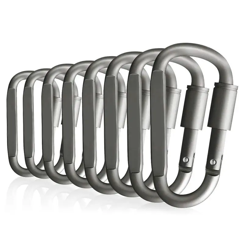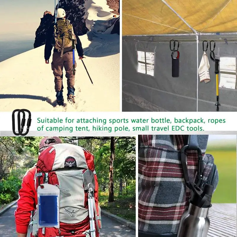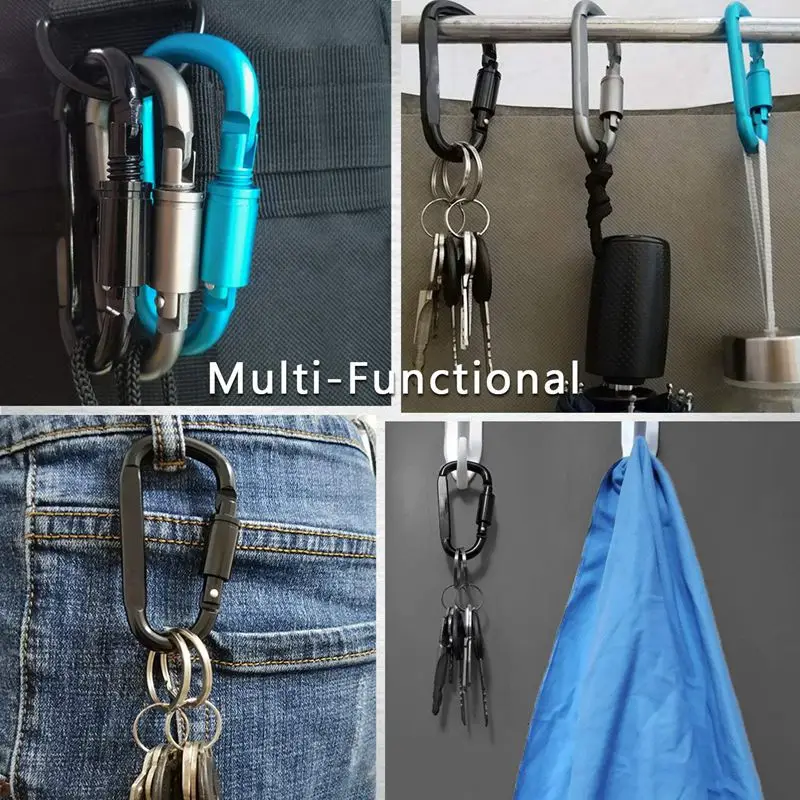 VERSATILE D-CLIP CARABINER: You can wear these heavy-duty carabiners as a trailer for your keys at home and at work. These D carabiners will also help you to safely transport your water bottle by simply hanging it on your backpack. ATTENTION: This item is NOT suitable for use in climbing, swings, hammocks, boxing and similar applications.
