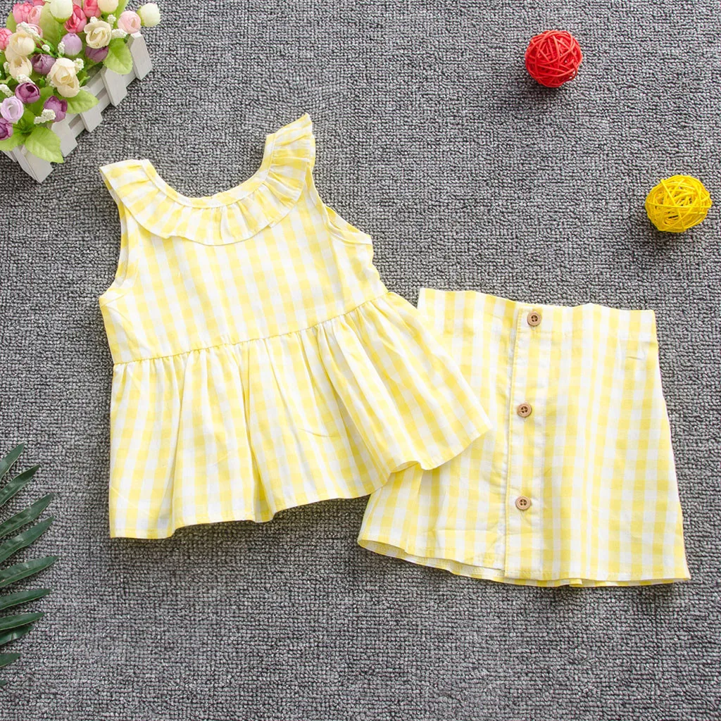 Комплекты одежды для девочек, лето 2019, хлопковый жилет, 2 предмета, Детские комплекты без рукавов, детский жилет + юбка для малышей