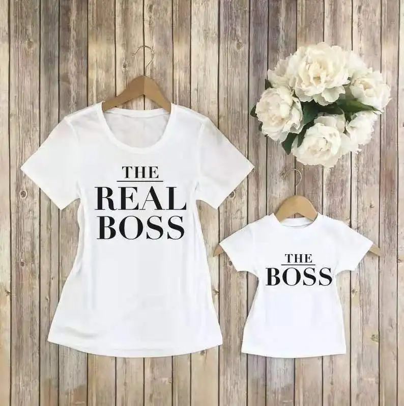 Милая футболка с короткими рукавами с надписью «Real Boss», с круглым вырезом, для папы и мамы, для семьи из четырех человек, новая одежда для родителей и детей