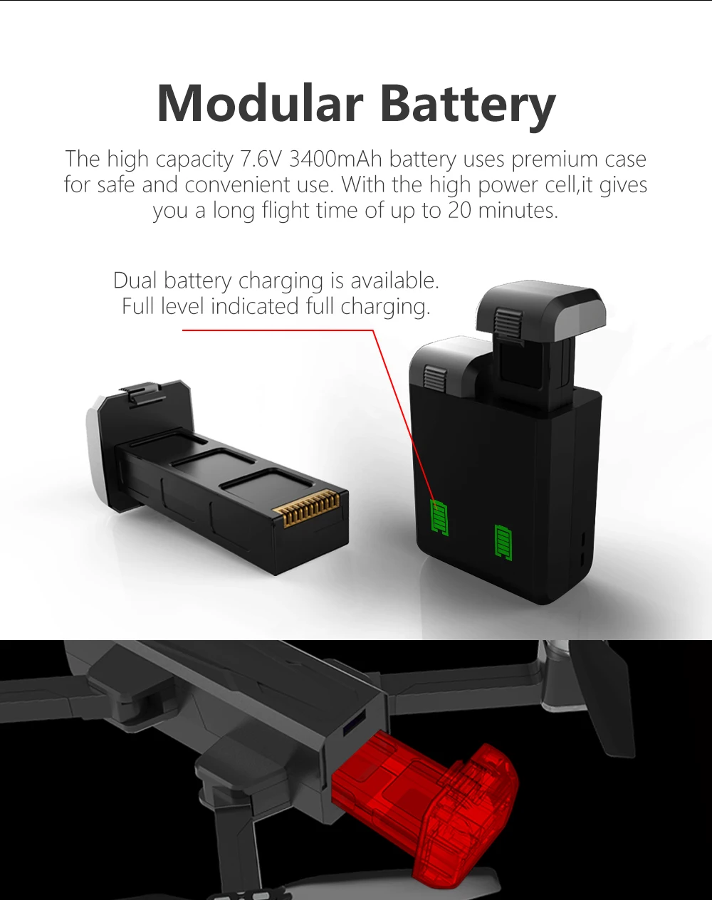 ● Корпус аккумулятора: 7,6 В 3400 мАч Li-po аккумулятор (входит в комплект)