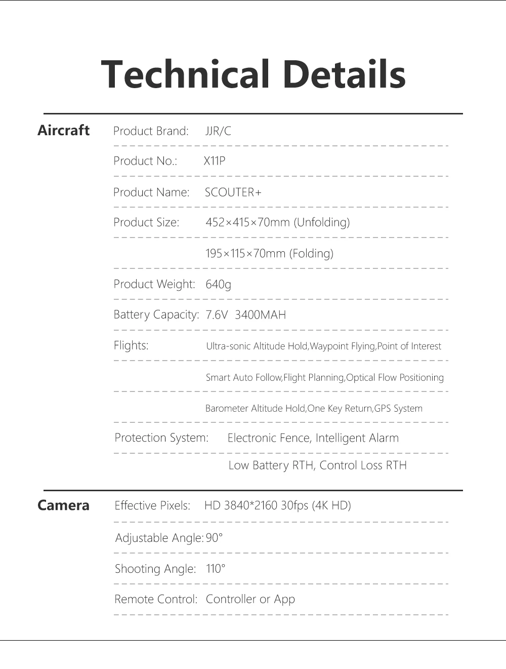 ● Функции: ascend, спуск, поворот налево, поворот направо, летают налево и направо, снимаются и садятся одной кнопкой, возврат к дому с помощью одной кнопки, 5G WiFi передача изображения, дистанционное управление видеозаписью камеры, пульт дистанционного управления для управления регулировкой наклона PTZ, быстрой и медленной передачей