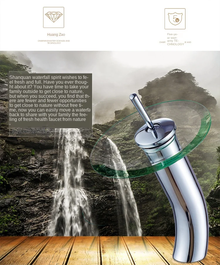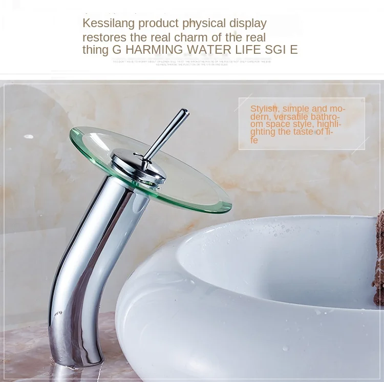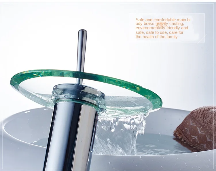 592907705730 медный кран со стеклянным водопадом для раковины столешницы горячей и холодной трубы