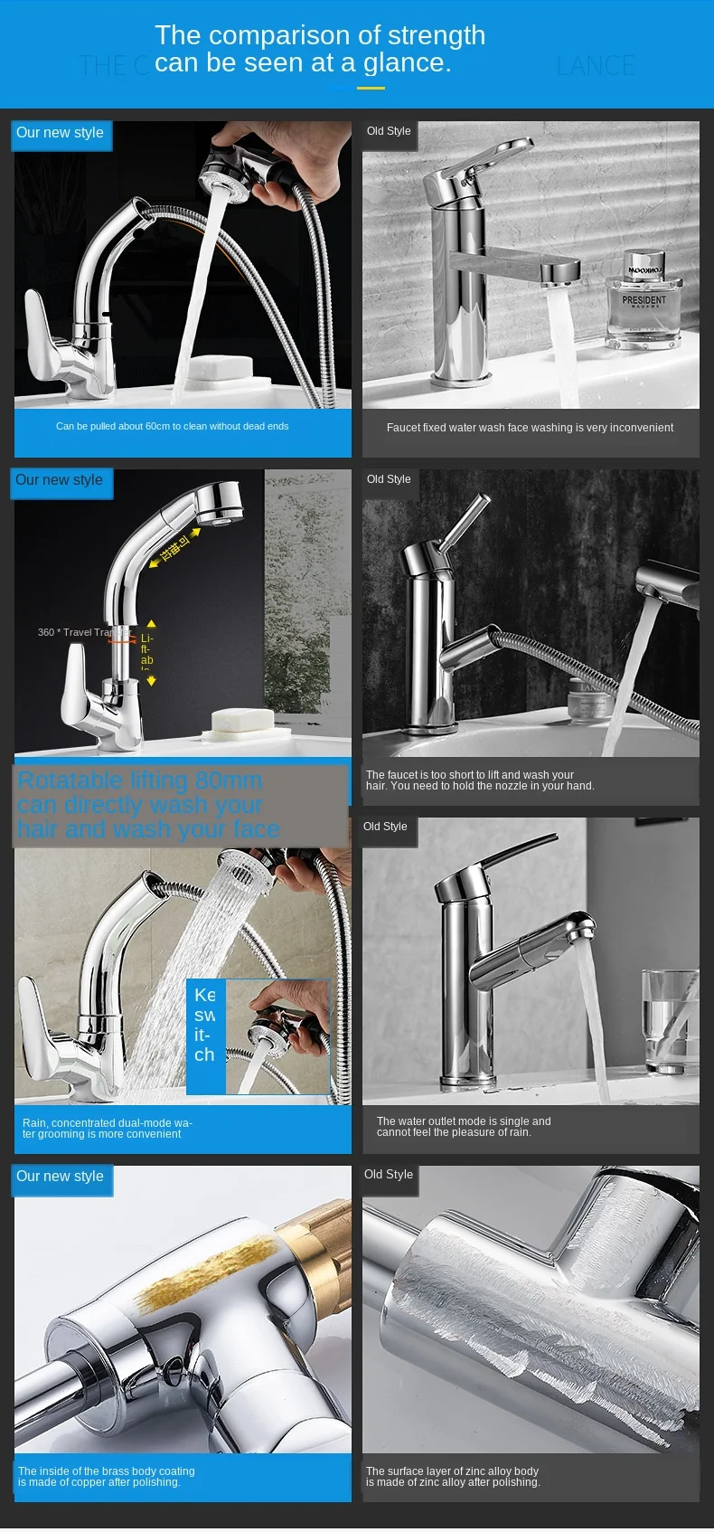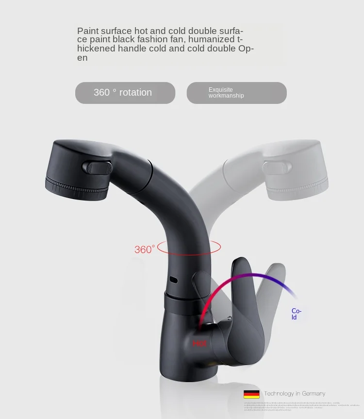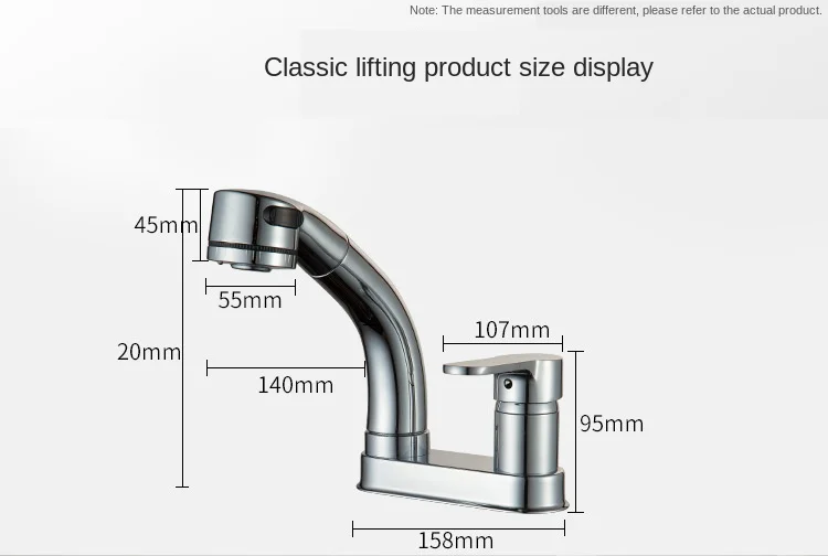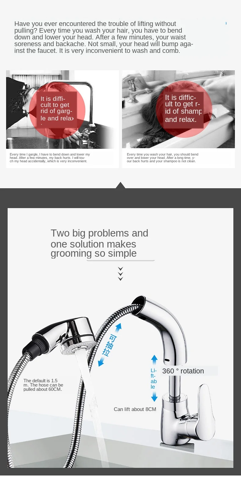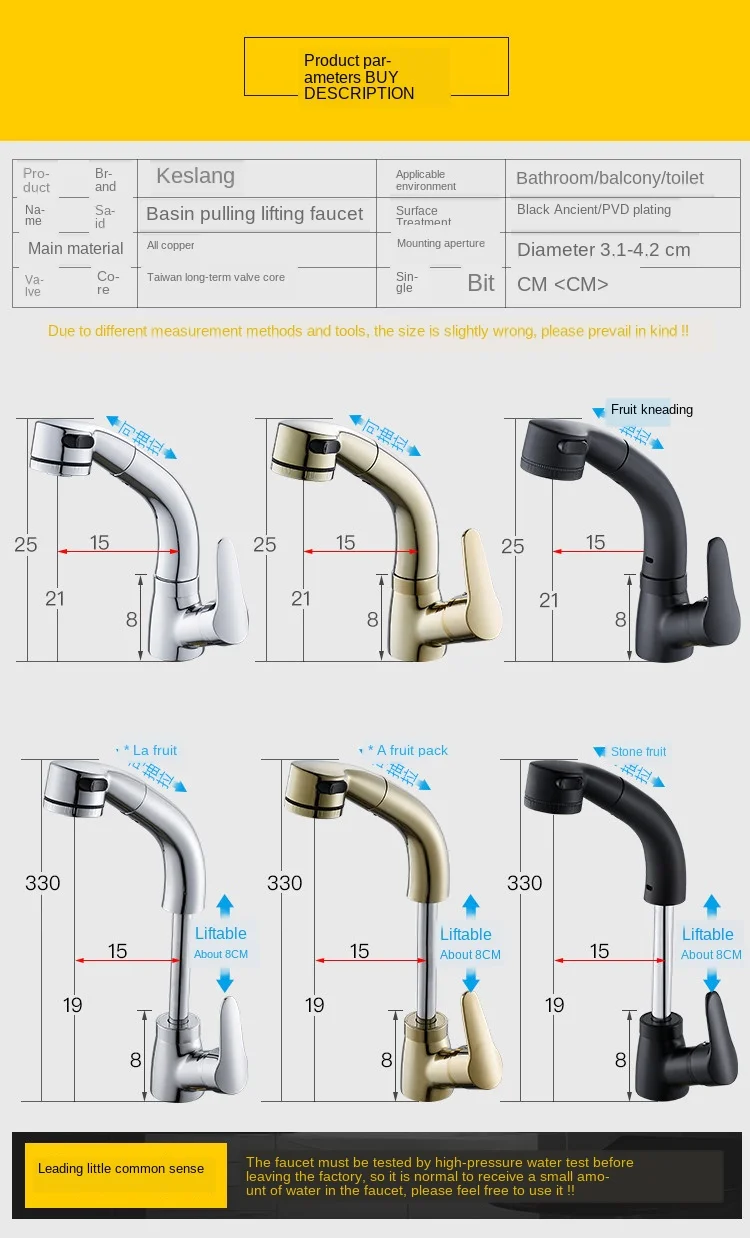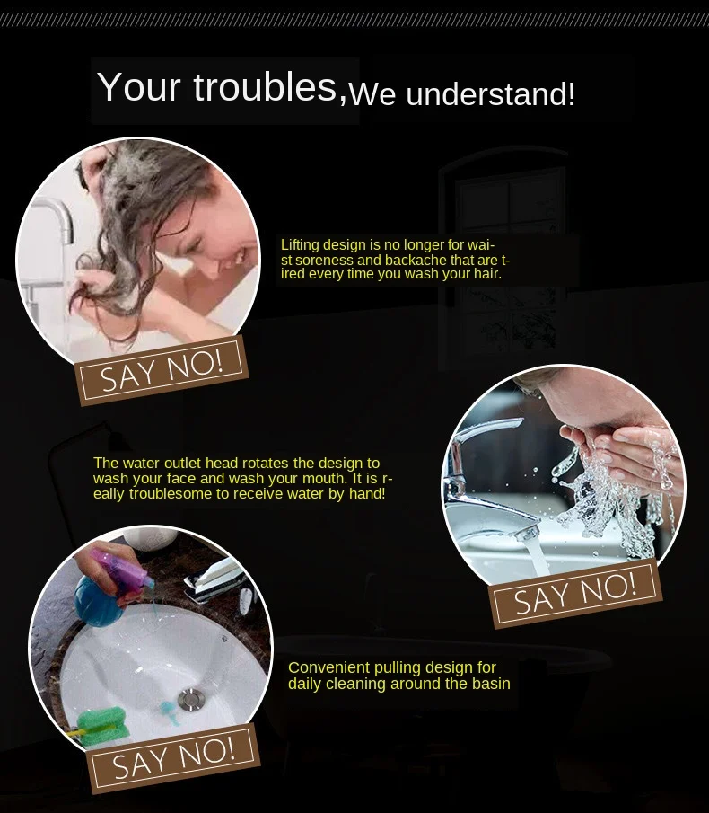 584646672387 Raisable отсоединяемые краны для раковины горячей и холодной телескопической двойной раковины с отверстием ванной раковины кран для раковины
