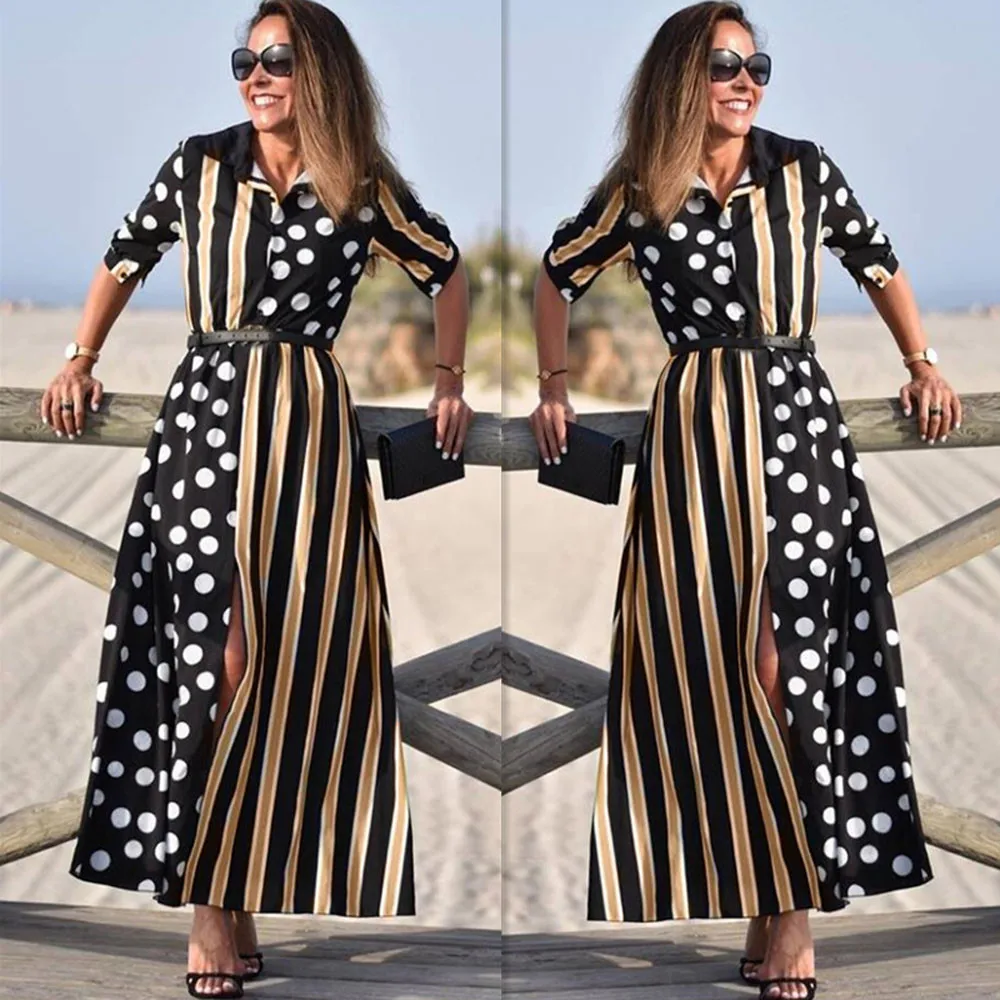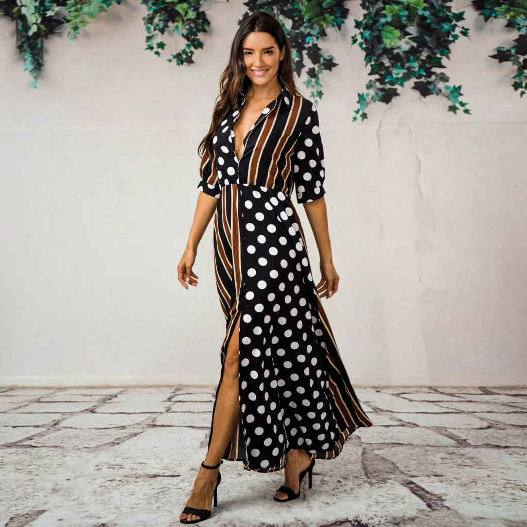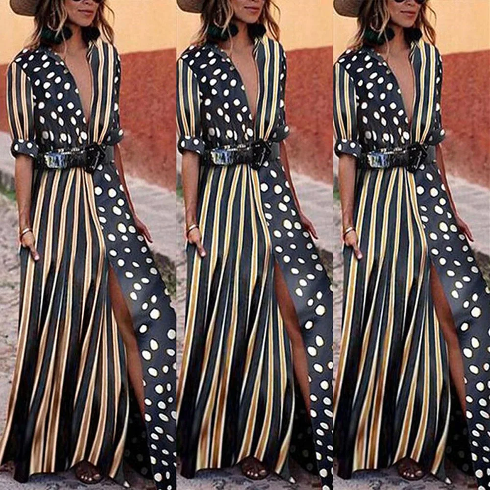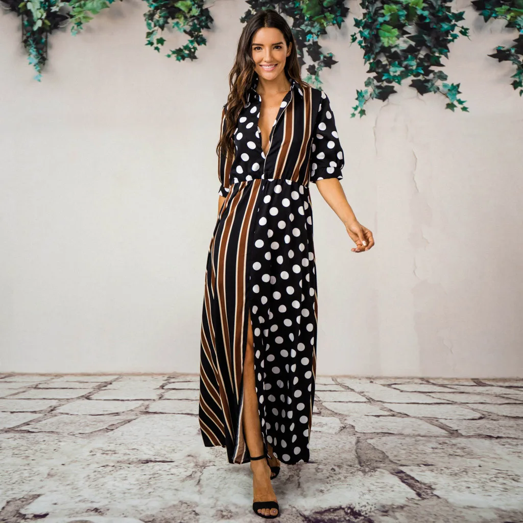 Женское богемное Половина рукава с оборками; Модные женские Повседневные Вечерние вечернее длинное платье