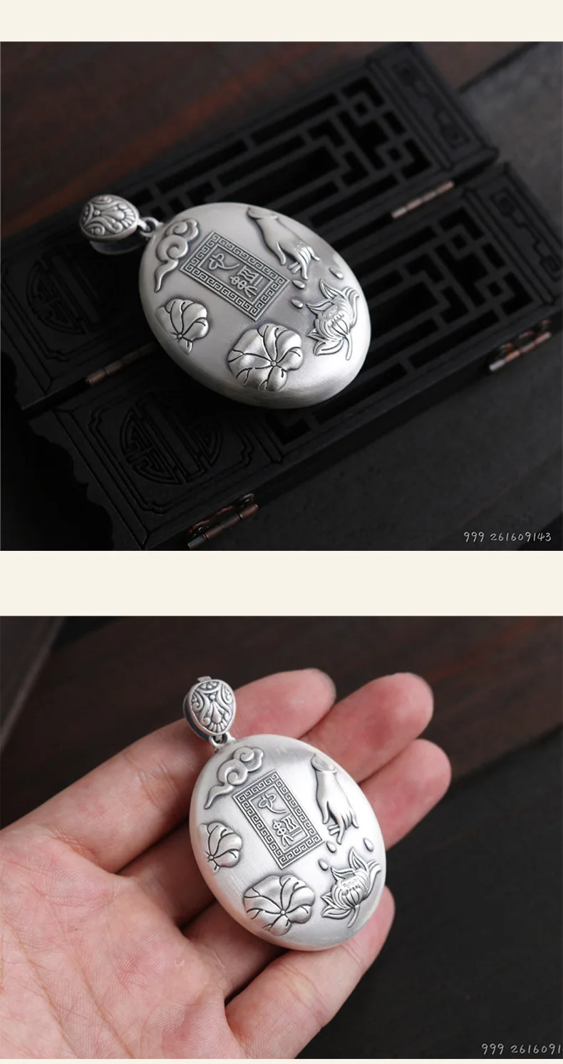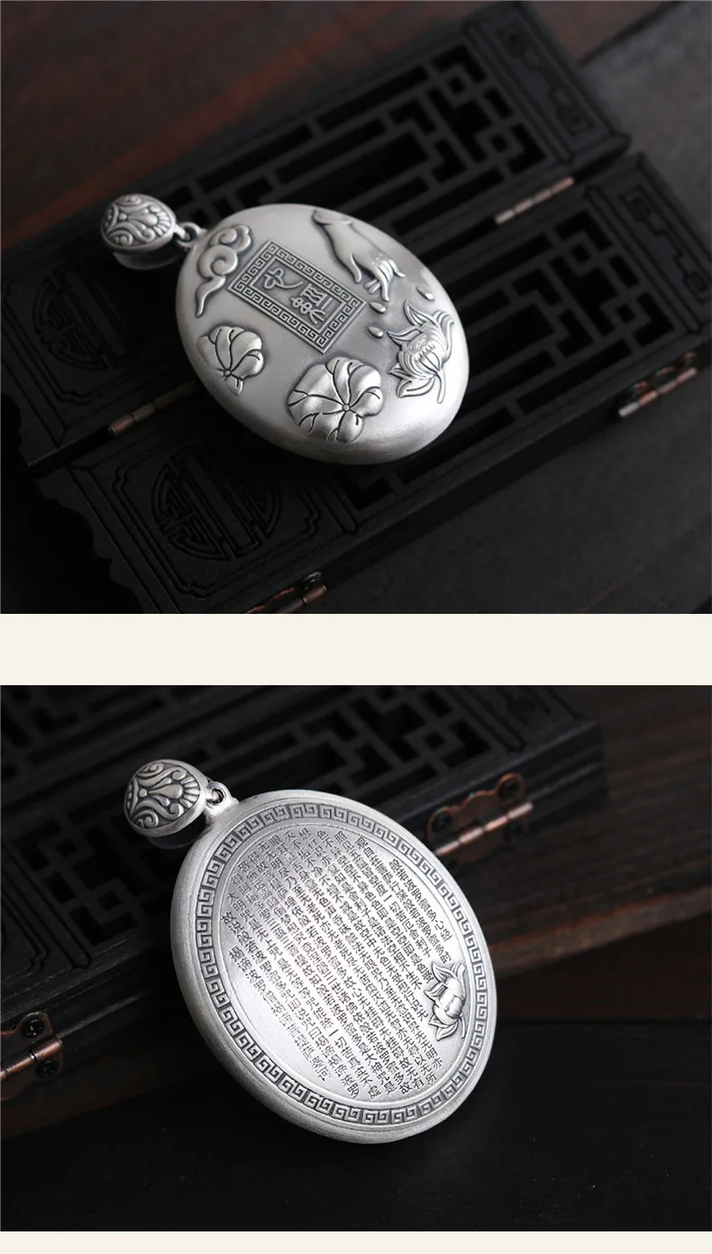 S999 чистое серебро сердце Сутра тег Материал: Стерлинговое Серебро S999 Внутренний диаметр: 60 мм Вес: 60 г