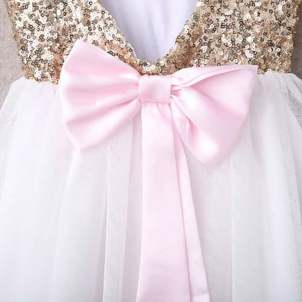 Кружевное платье с блестками для девочек Хлопковое платье принцессы с круглым вырезом