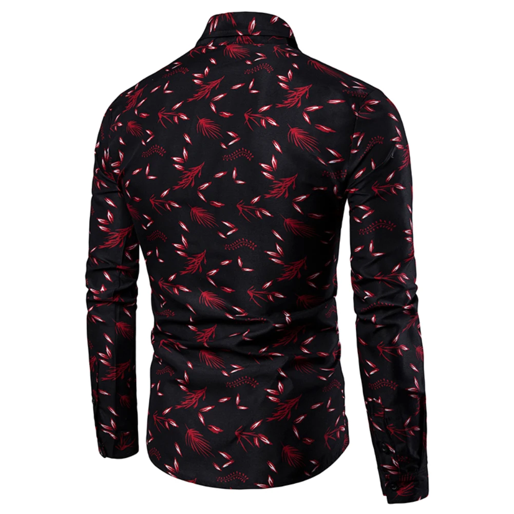 Модная мужская рубашка с отложным воротником, Повседневная рубашка с длинным рукавом и принтом в виде листьев, приталенная рубашка размера плюс, мужская рубашка в деловом стиле