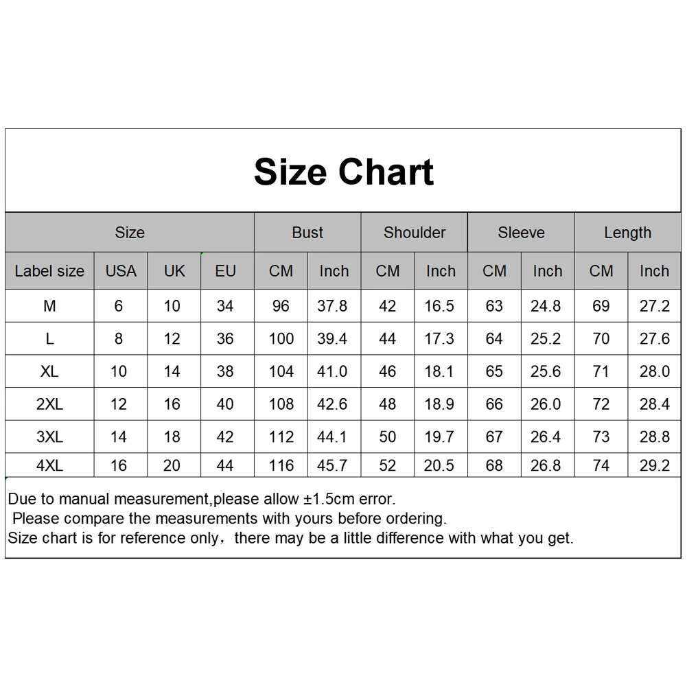 [Наши Размеры 4XL] Бюст: 116 см/45,7 ", плечо: 52 см/20,5", рукав: 68 см/26,8 ", Длина: 74 см/29,2" (прибл.)