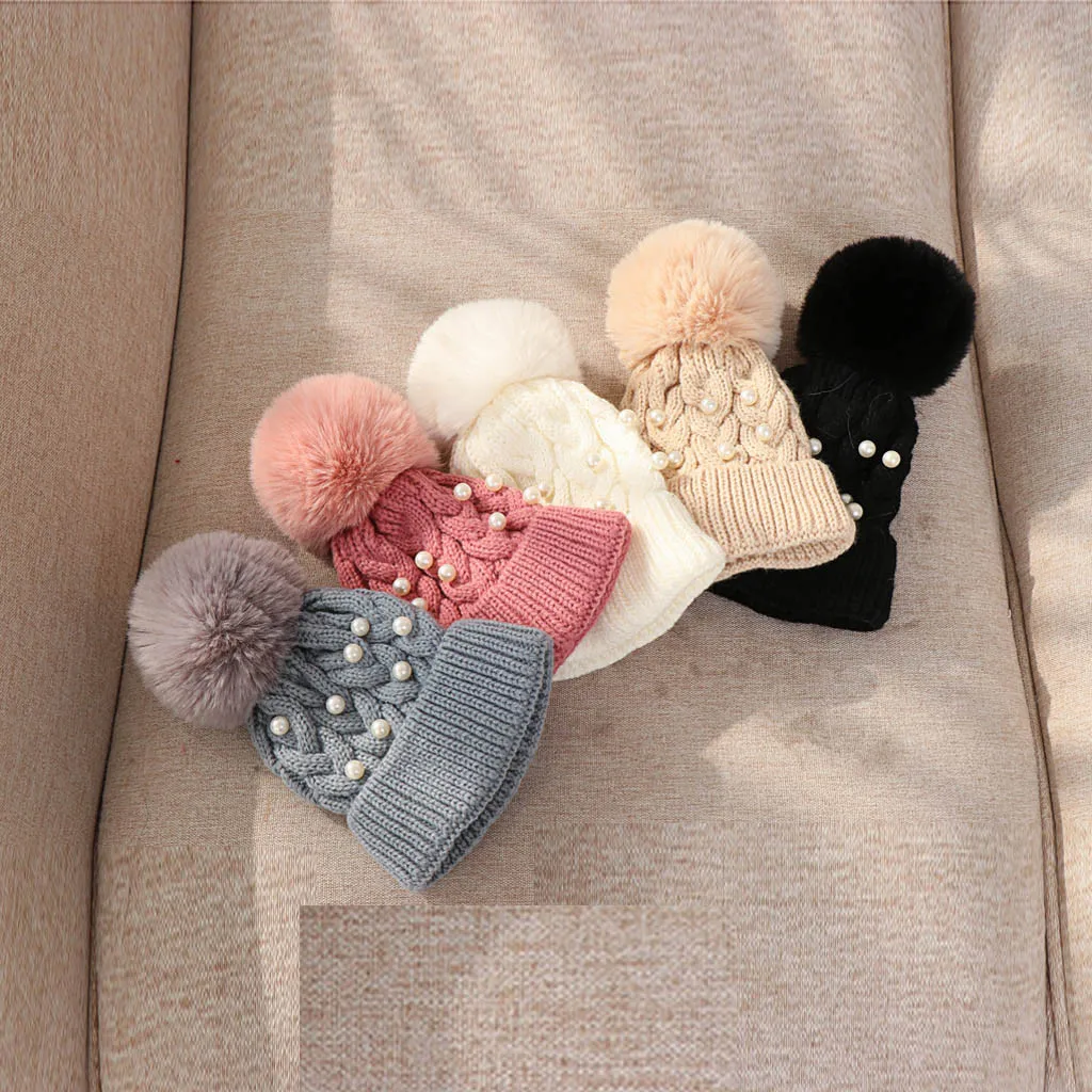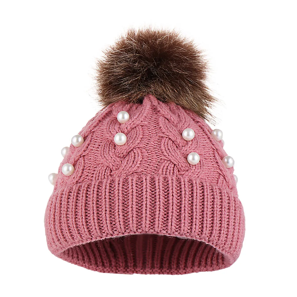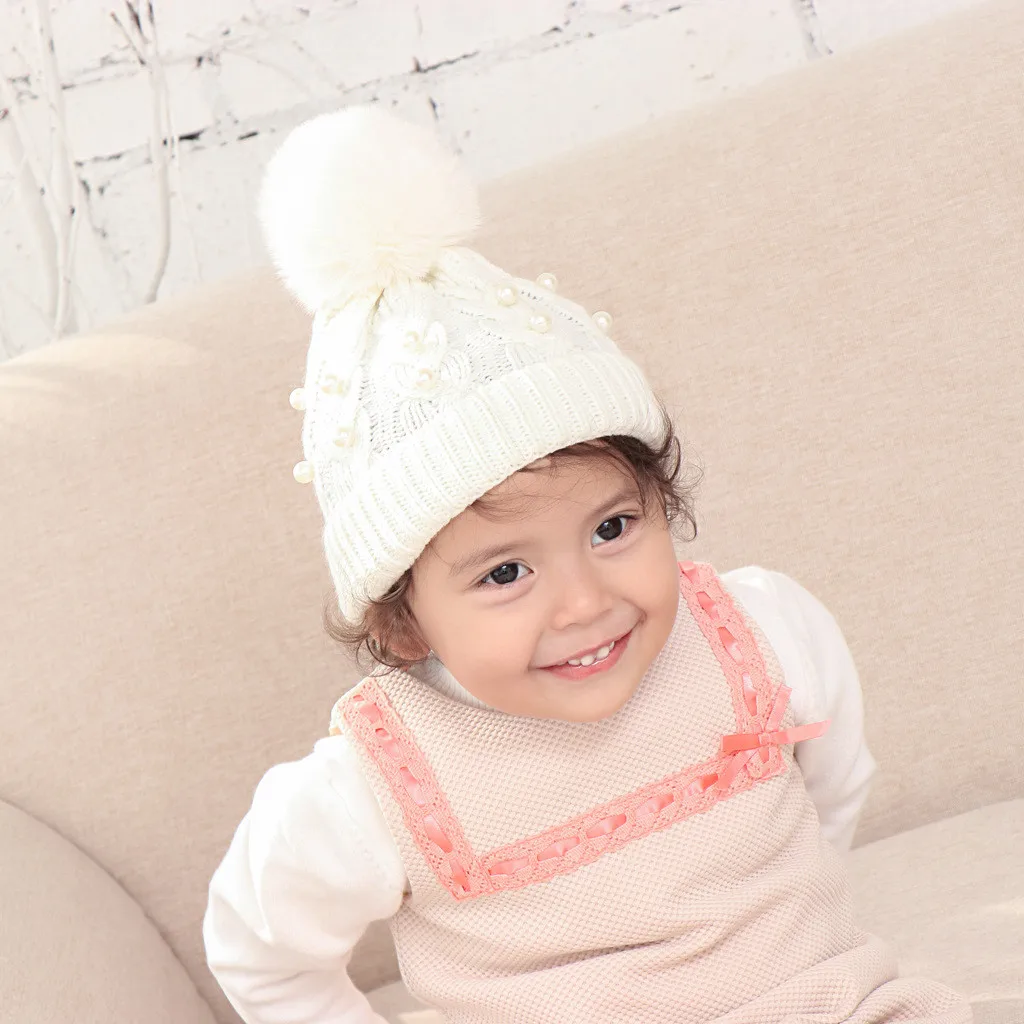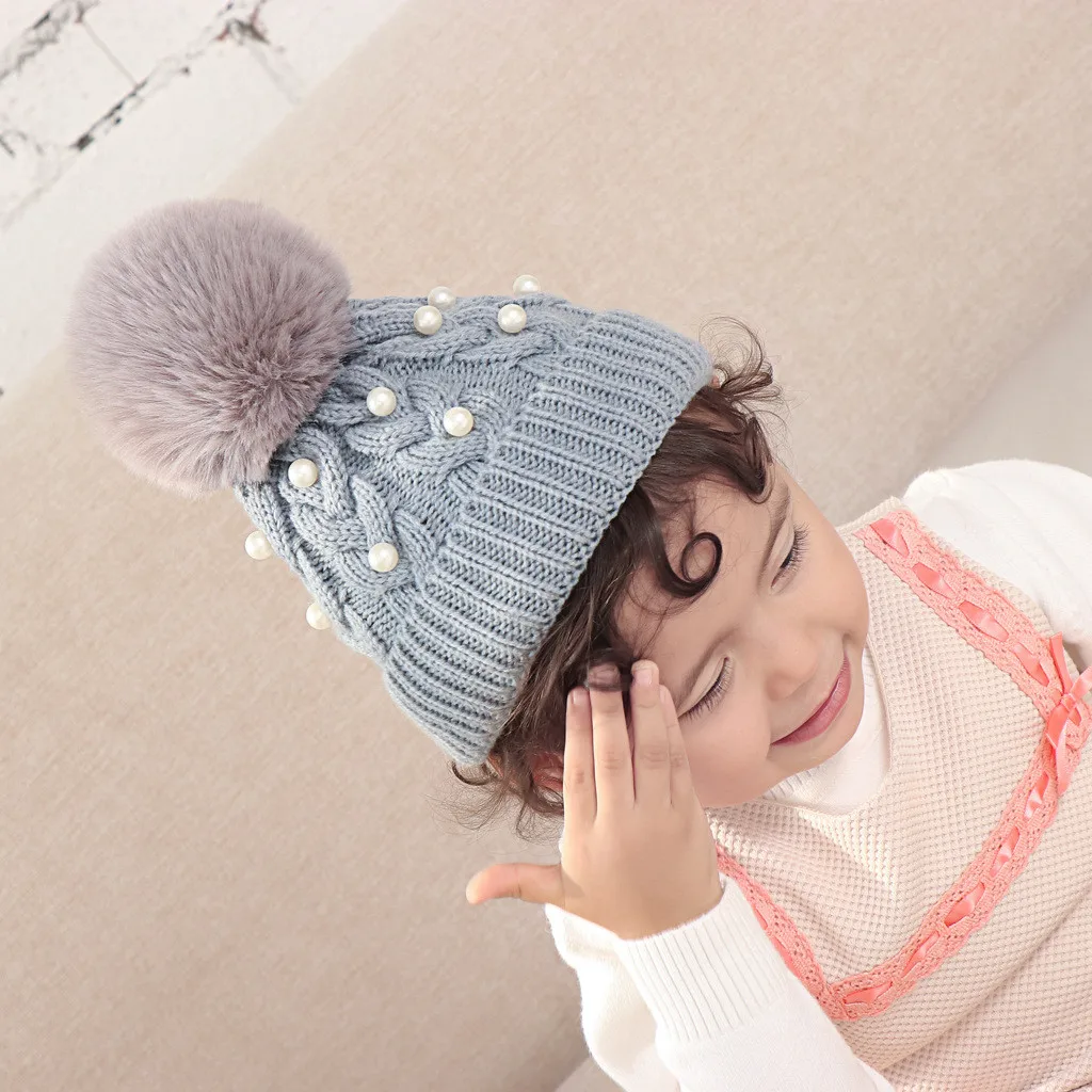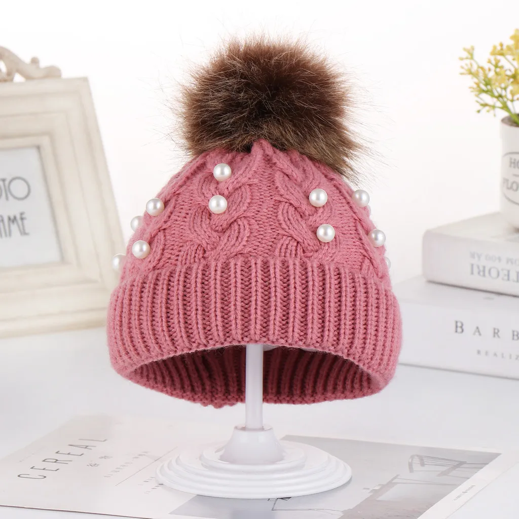 Детская Вязаная Шерстяная кепка, Теплая Зимняя кепка с бисером