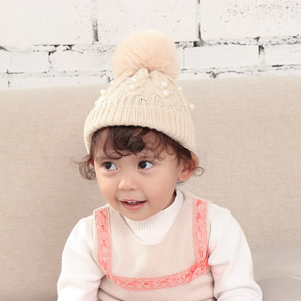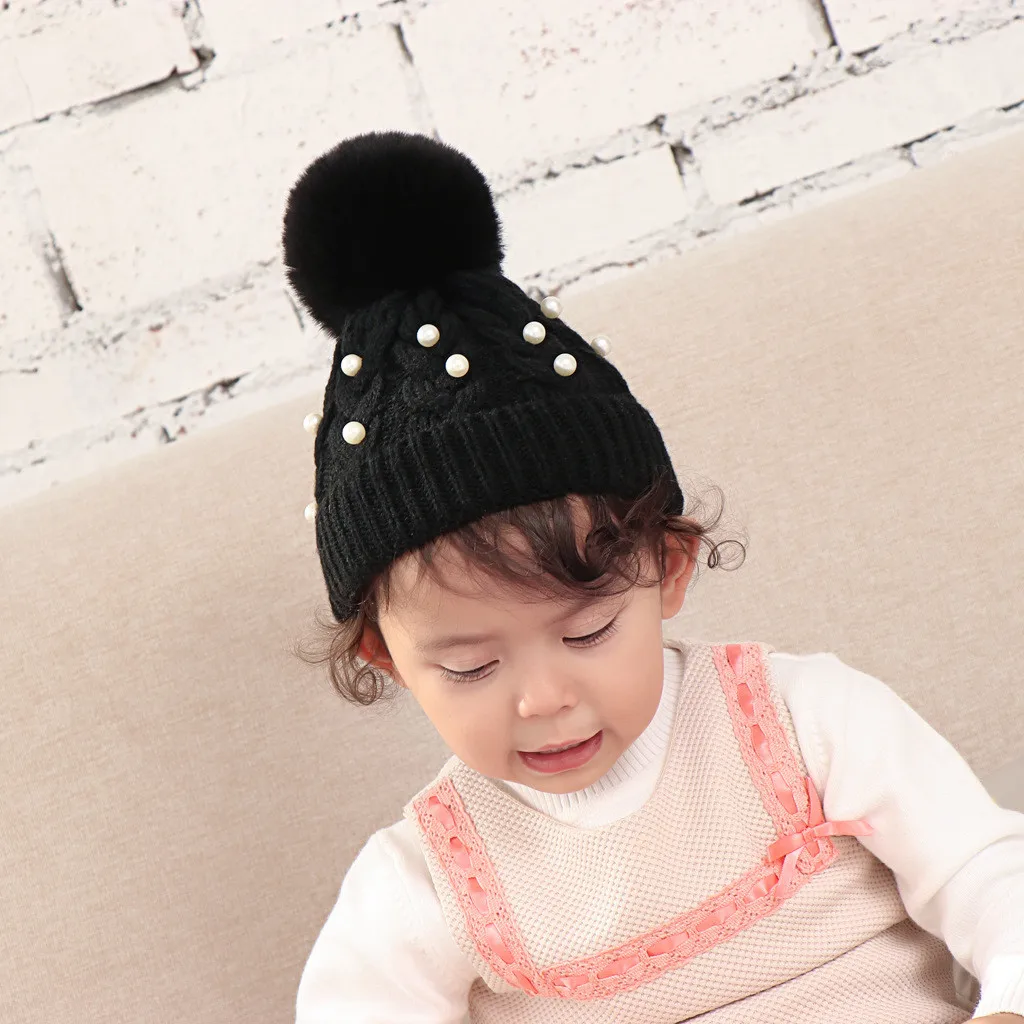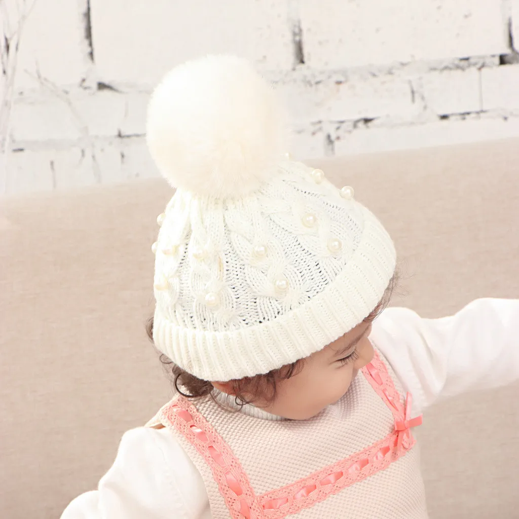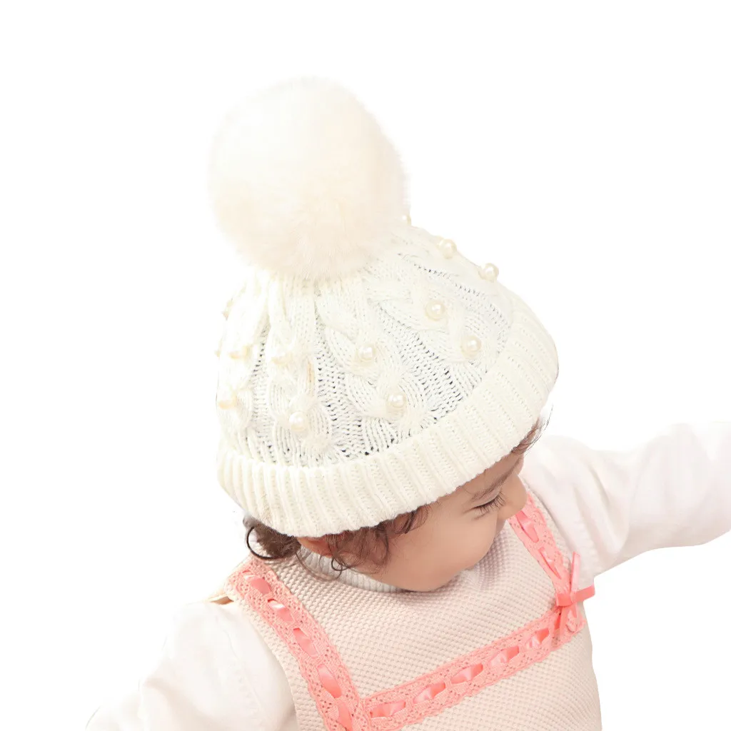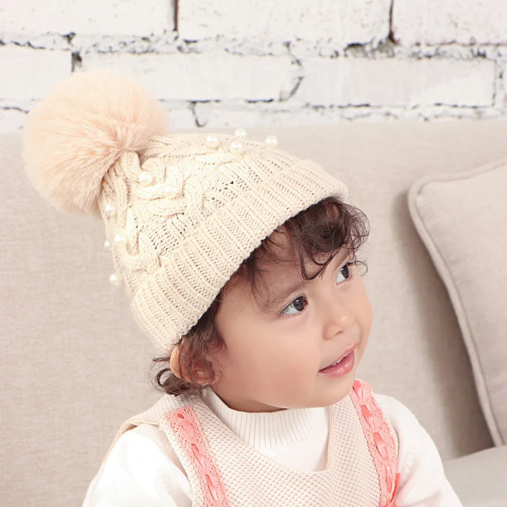 Детская Вязаная Шерстяная кепка, Теплая Зимняя кепка с бисером