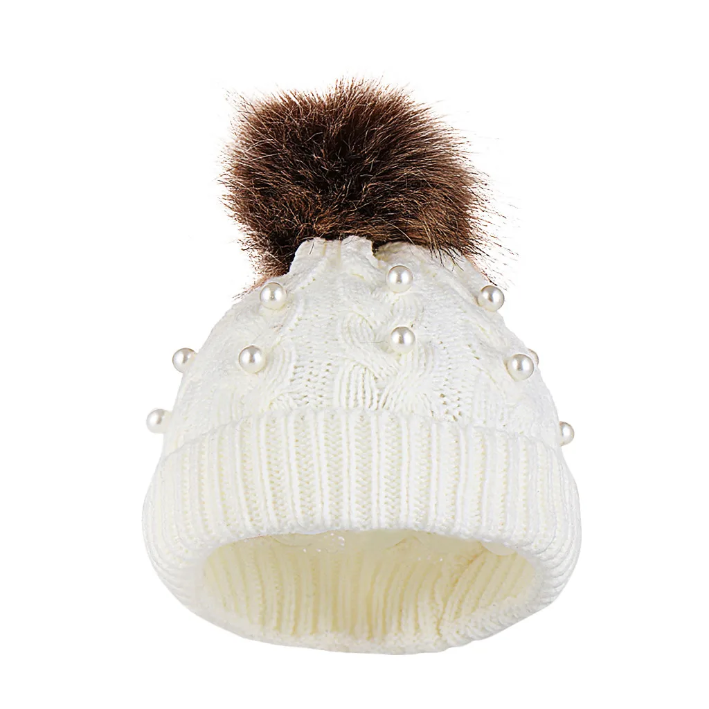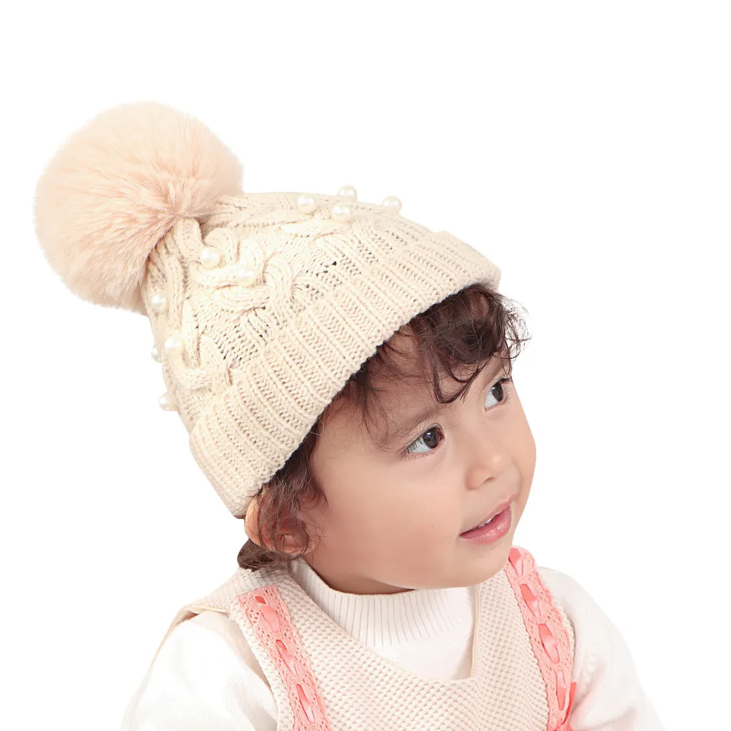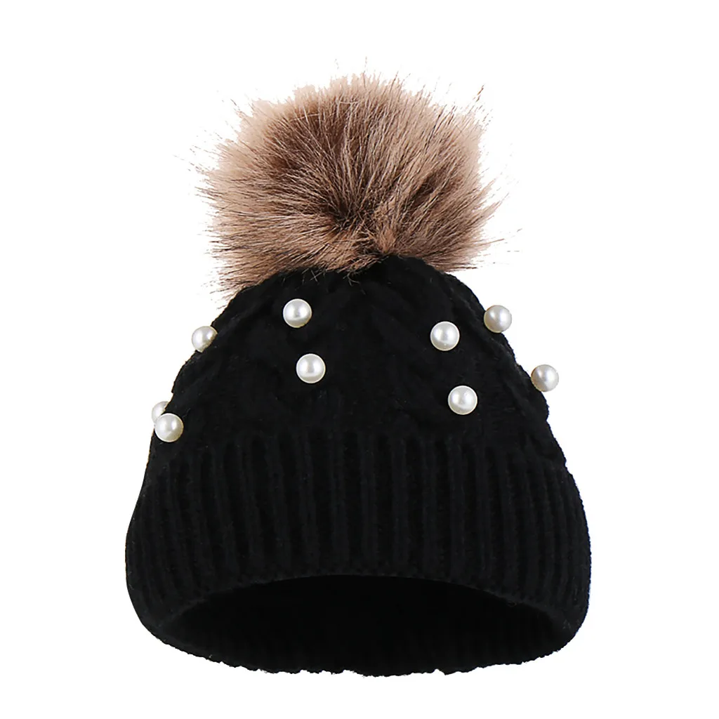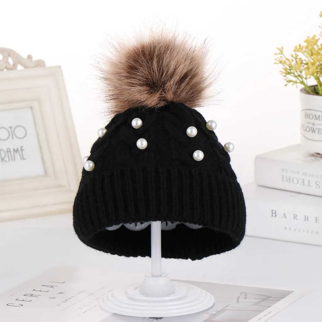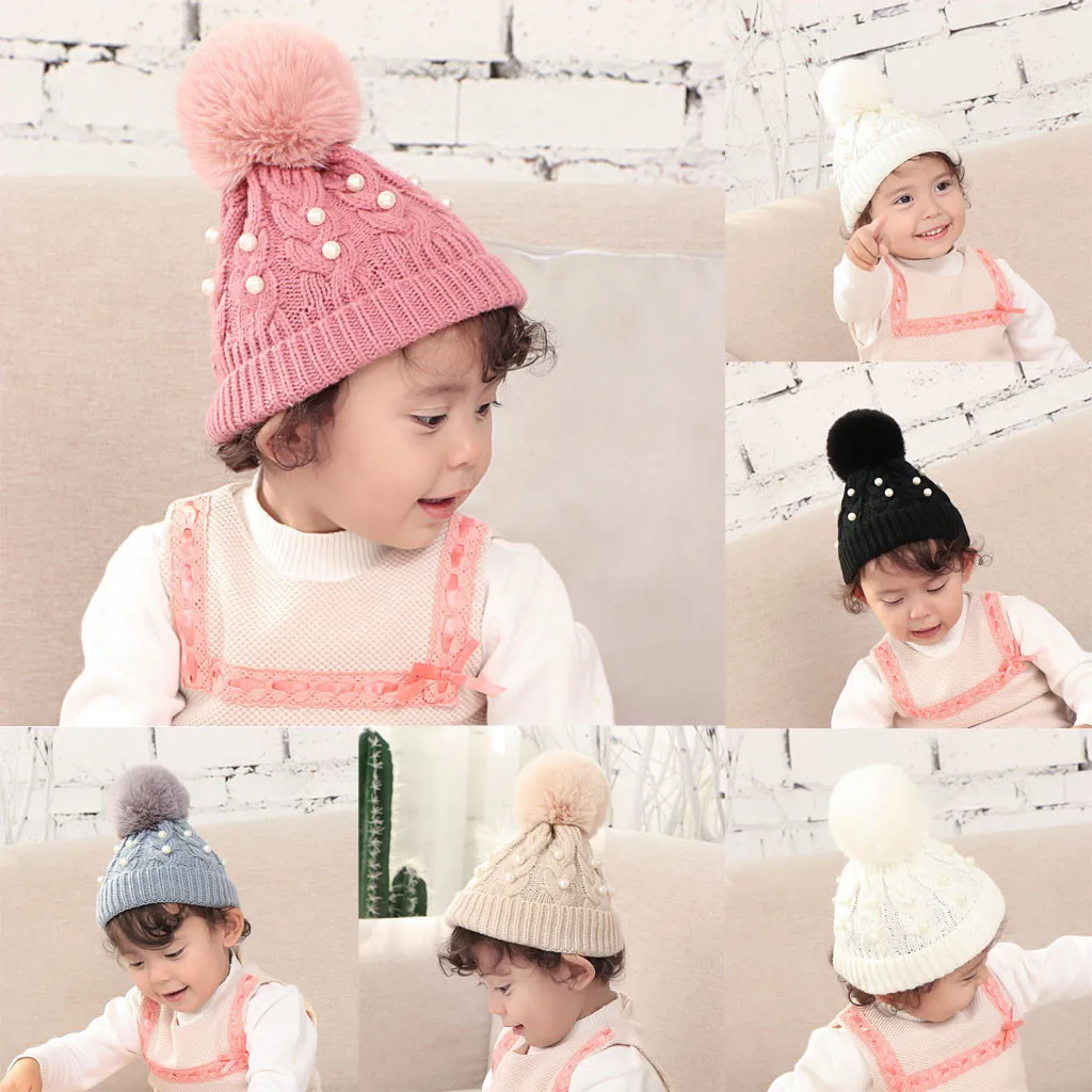 Детская Вязаная Шерстяная кепка, Теплая Зимняя кепка с бисером