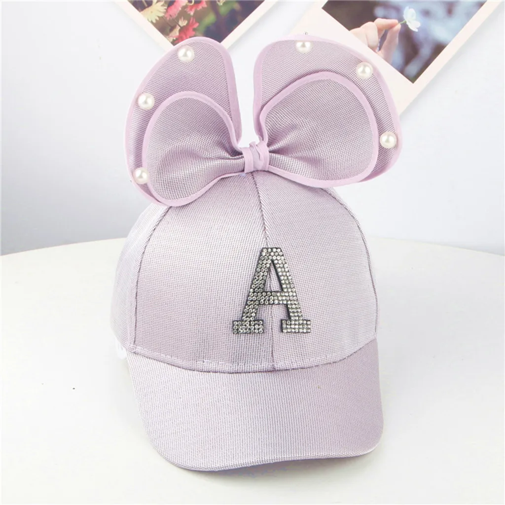 Cute Kids Children Pearl Bowknot Letter Peaked Hat Baseball Cap Sunhat