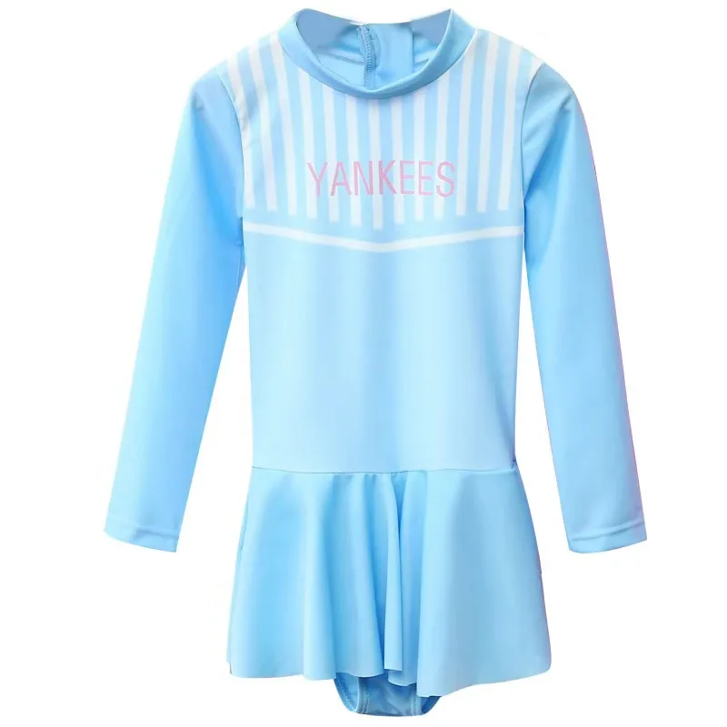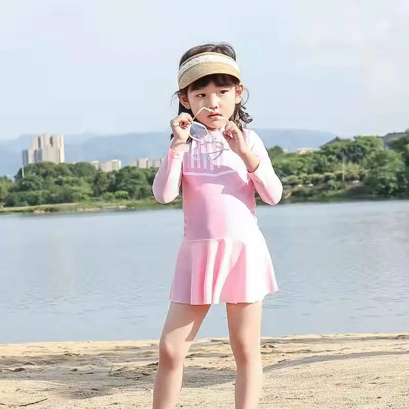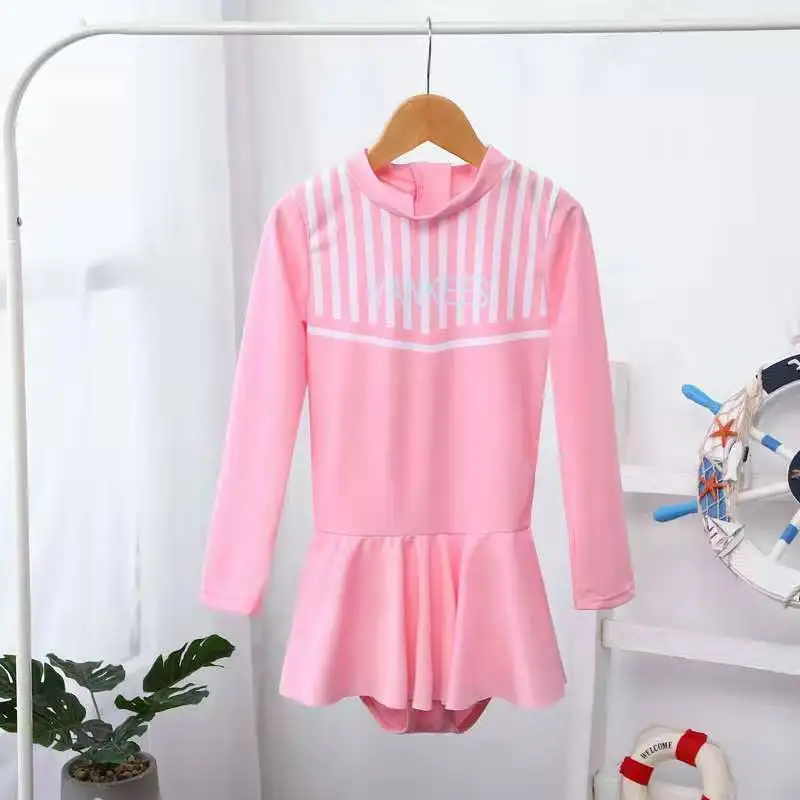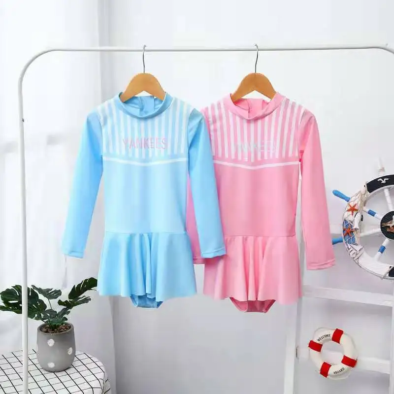 Одежда для купания для девочек; Полосатая кружевная юбка на бретельках; Цельный купальный костюм; Купальный костюм для больших детей с длинными рукавами