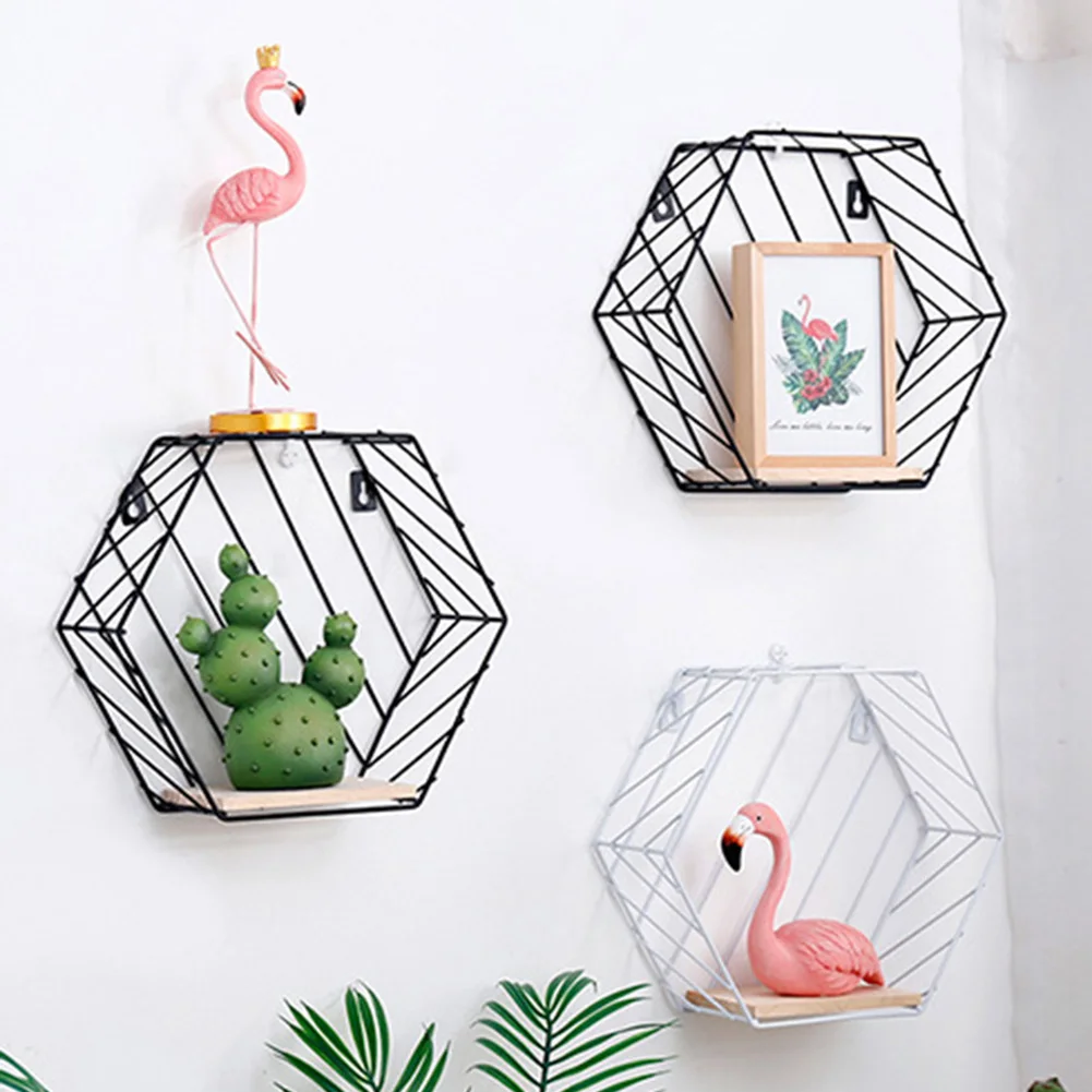 Железный шестигранный подвесной стеллаж в скандинавском стиле для гостиной и спальни