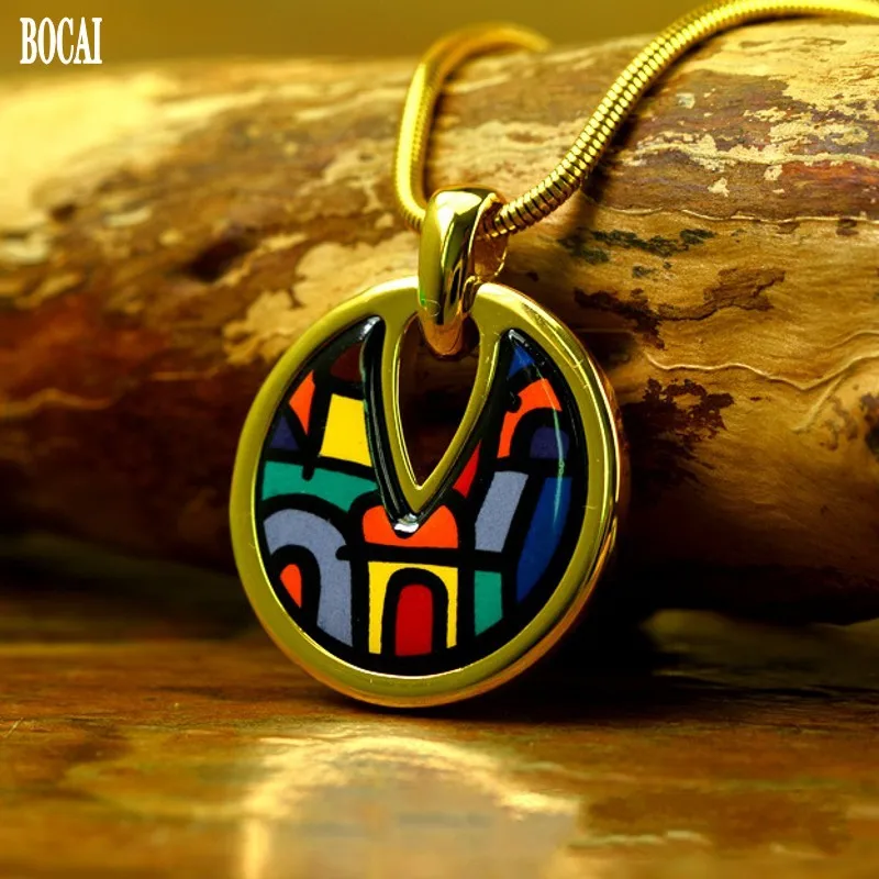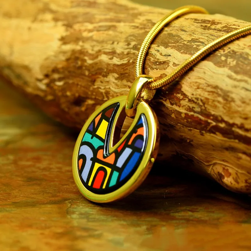 Перегородчатый браслет Материал: титановая сталь Процесс: Позолота 18 карат, ручная роспись, обжиг при высокой температуре, не выцветает Диаметр подвески 2,6 см