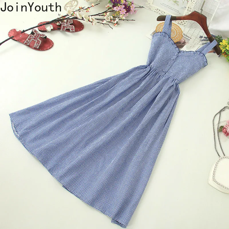 JoinYouth женское модное черное белое Полосатое джинсовое регулируемое платье с карманами на подтяжках осенние женские подтяжки