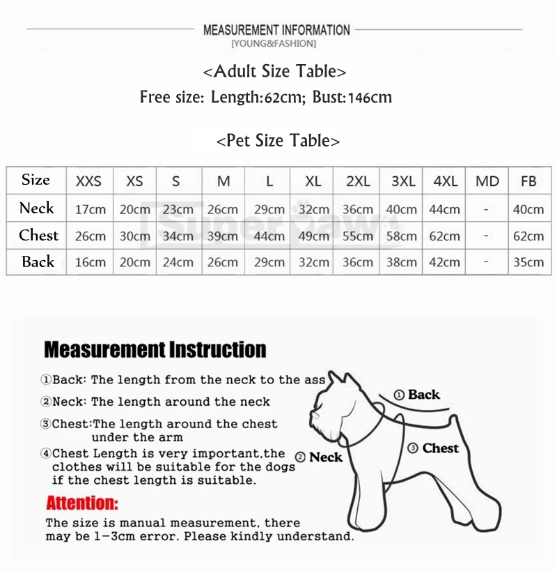 * Измерение вашей собаки для идеальной посадки * 1. Как измерить вашу собачку? Есть изображение, чтобы показать, как измерить вашу собаку, как показано выше, пожалуйста, проверьте его. 2. Ваш ребенок обычно носит размер s, это не означает, что все размеры s подходят для него. Пожалуйста, внимательно проверьте информацию о размерах перед покупкой. Вы ознакомились с таблицей размеров и обнаружили, что ваша собака на размер меньше. Но это не означает, что он/она маленький размер для всей одежды. Различные дизайнеры и производители используют свои собственные Таблицы размеров. Поэтому замеры, указанные в небольшом размере от производителя "А", будут соответствовать размеру XS в таблице размеров производителя B. Не покупайте тот или иной Размер, потому что это то, что вы всегда покупаете в зоомагазине или интернет-магазине. Всегда посмотрите на таблицу размеров для обхвата груди и длины и подтвердите размер перед покупкой. 3. Если какие-либо измерения являются «лучше» двух размеров, выберите больший размер. 4. Если ваша собака растет, вы можете заказать больший размер 5. Делайте все измерения немного свободно. Делайте все измерения немного свободно, так что ваша собака сможет двигаться и дышать, но не слишком свободно. Пожалуйста, измерьте внимательно перед покупкой и напишите нам, если у вас есть какие-либо вопросы по размеру, прежде чем вы предлагаете цену или совершите покупку. Полезные советы: 1. Ручные измерения могут иметь погрешность 2-3 см. 2. Для двух ног одежды, пожалуйста, обратите внимание на обхват груди, а для четырех ног, должны подходить для обхвата груди и длины спины. 3. Для растущего питомца лучше выбрать больший размер.