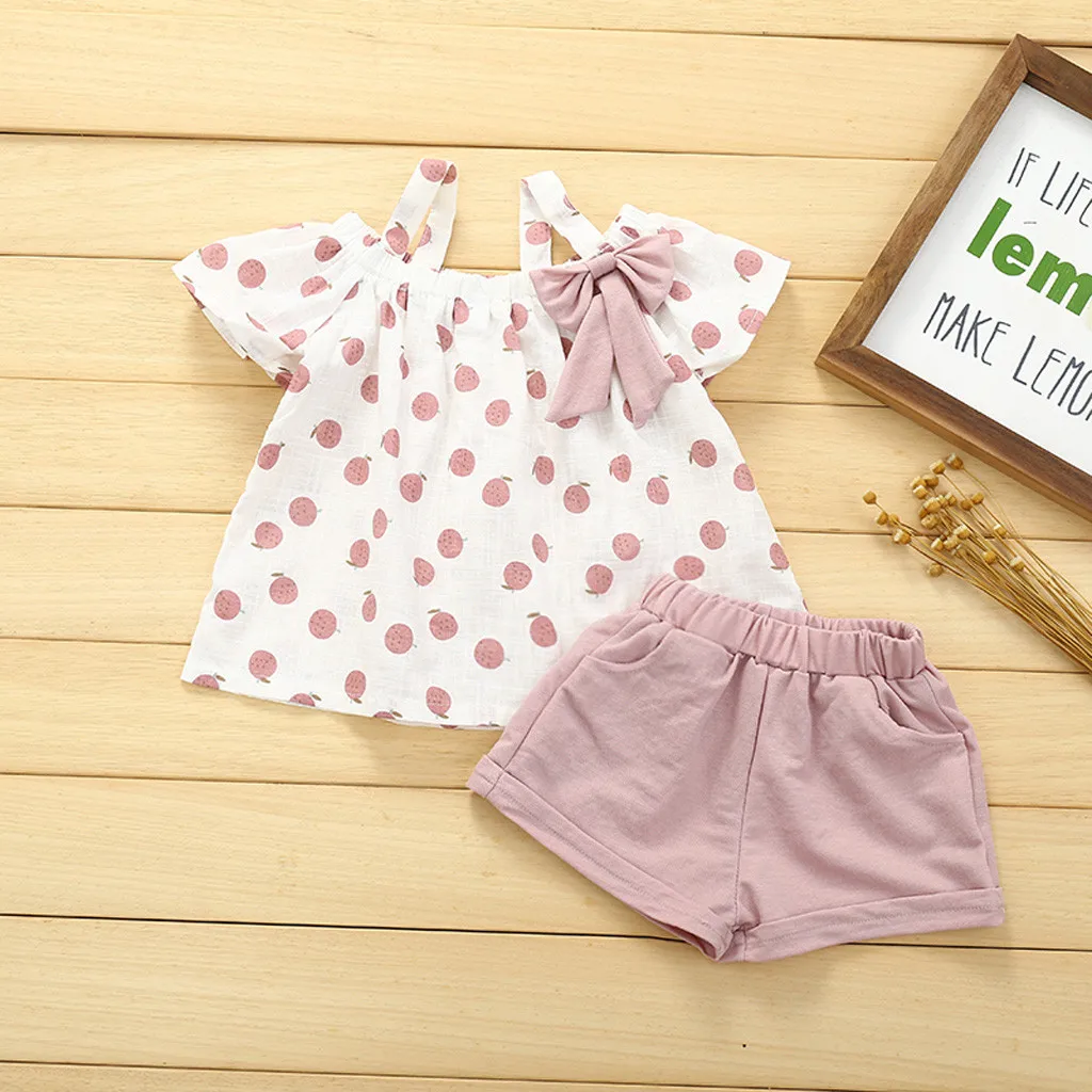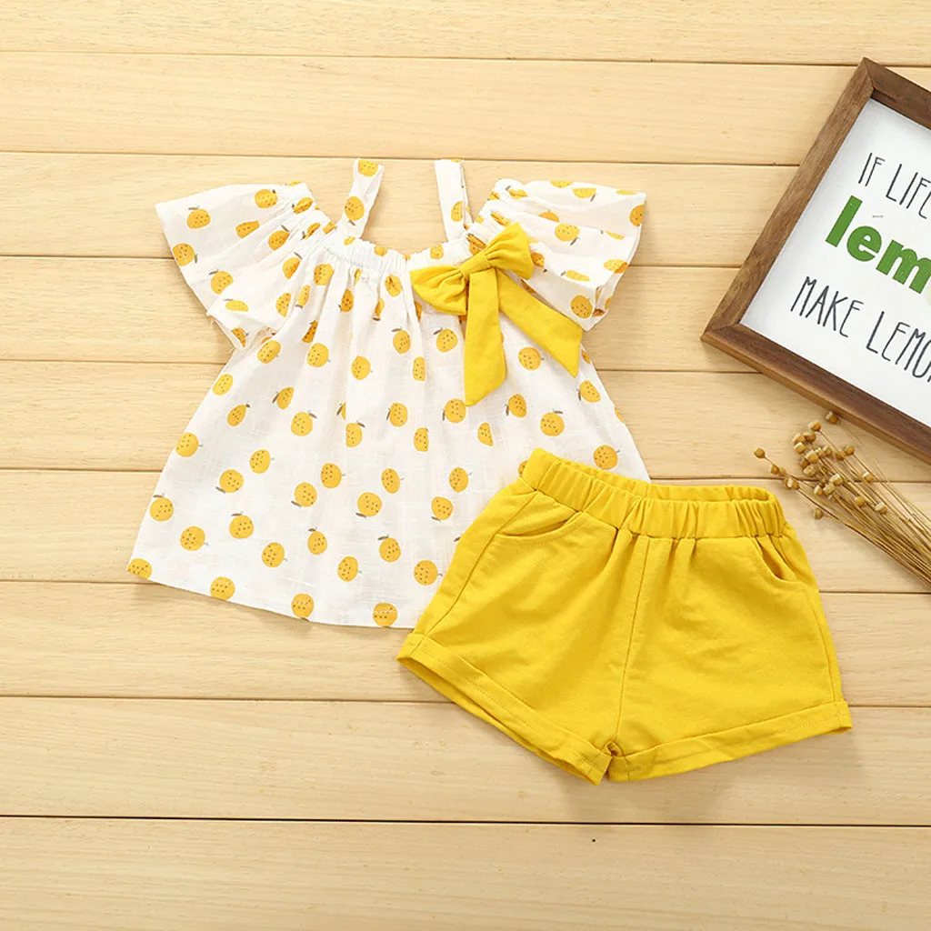 Хлопковый льняной Топ без рукавов с фруктовым принтом и шорты для маленьких детей