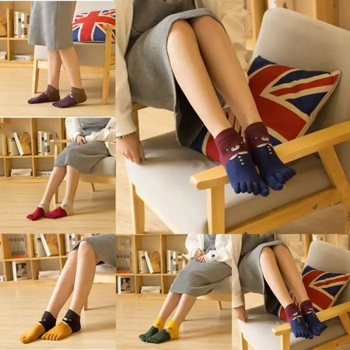 Новый 1 пара Для женщин и девочек Мягкие Носки с рисунком кошки пять пальцы большой палец на ноге хлопок на осень и зиму теплые носки BF88