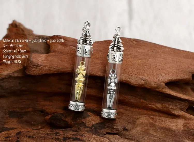 Материал: серебро 925 пробы + позолота + стеклянная бутылка Размер: 79*12 мм Растворитель: 49*8 мм Подвесное отверстие: 5 мм Вес: 20,2 г