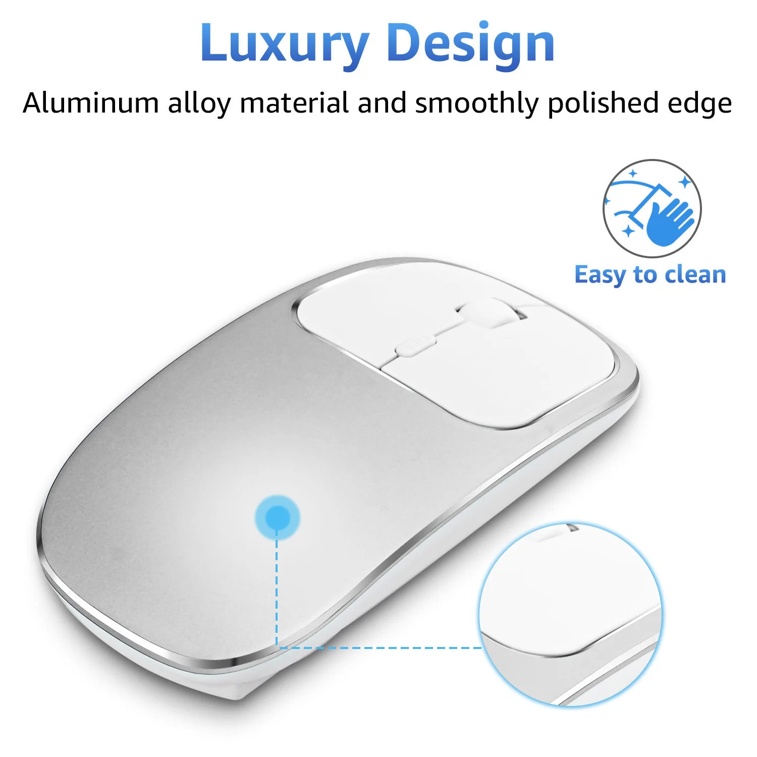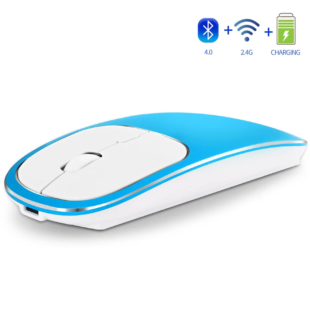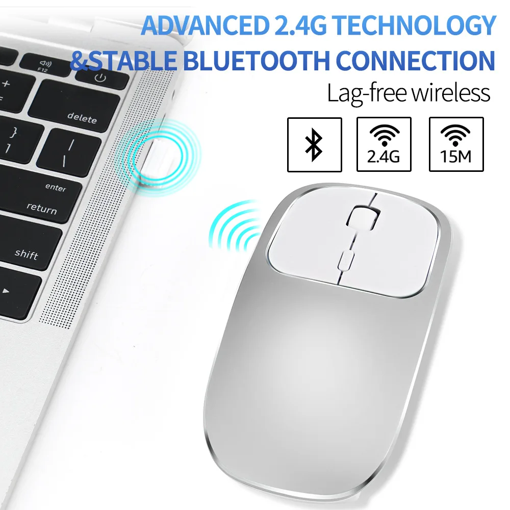 Aluminum Alloy Dual-mode Wireless Bluetooth Mouse Rechargeable Silent Cute Ultra-thin Wireless Mouse for Macbook for ipad 10.2