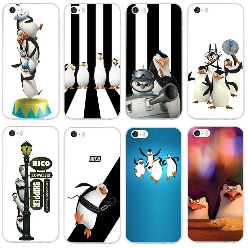 Мягкий ТПУ силиконовый чехол для телефона, защитный чехол для iPhone 5S, чехол 5 SE 5C 5S X XR XS 11 Pro Max 6 6S 7 Plus Пингвины Из Madagascar, черный узор, чехол для телефона, противоударный чехол, защитный чехол для телефона