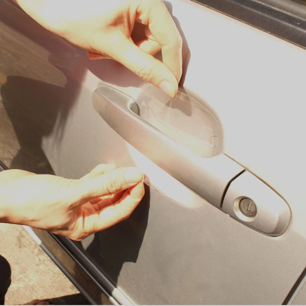 Это Защитная виниловая пленка защищает дверную ручку от царапин, царапин ногтей И песок, смазка, соль; Она остается невидимой и сохраняет лакокрасочное покрытие Вокруг автомобильной дверной ручки